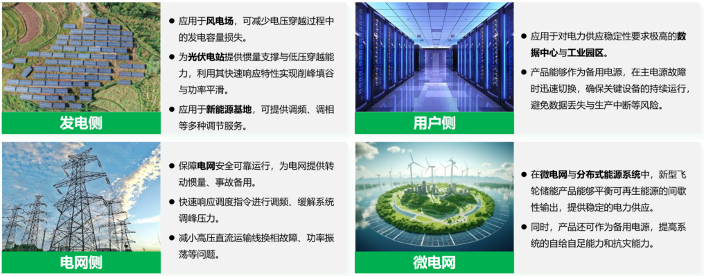 高惯量新型飞轮储能系统的核心优势在于毫秒级功率响应与物理惯量支撑,未来将在电力系统的发电侧、电网侧、用户侧及微电网等场景中发挥重要作用。