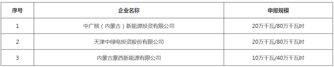 海南区50万千瓦/200万千瓦时电网侧储能电站项目开发主体分别为:中广核(内蒙古)新能源投资有限公司(20万千瓦/80万千瓦时)、天津中绿电投资股份有限公司(20万千瓦/80万千瓦时)、内蒙古蒙西新能源有限公司(10万千瓦/40万千瓦时)。