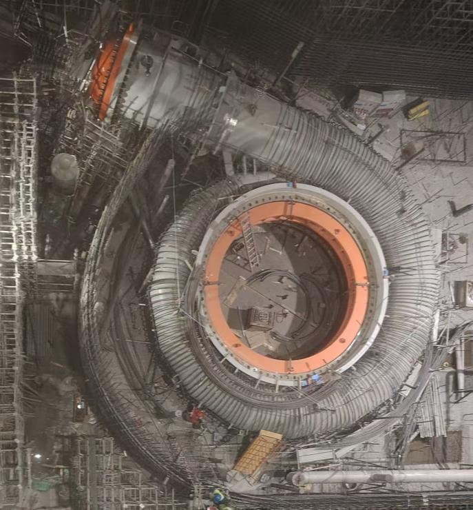 座环蜗壳是水轮发电机组的核心部件,其承压能力直接关系机组的安全稳定运行。本次水压试验是对蜗壳结构强度、刚度、密封性及制造焊接质量的系统性检验,是实现蜗壳与钢筋混凝土联合受力的关键步骤。本次座环蜗壳水压试验压力值最高达12.8兆帕,在11个不同压力等级下分别完成相应操作。