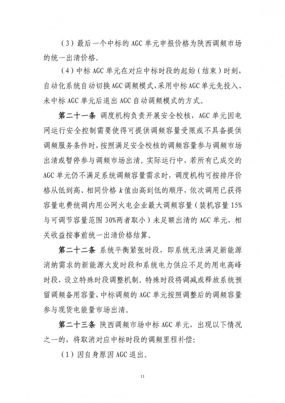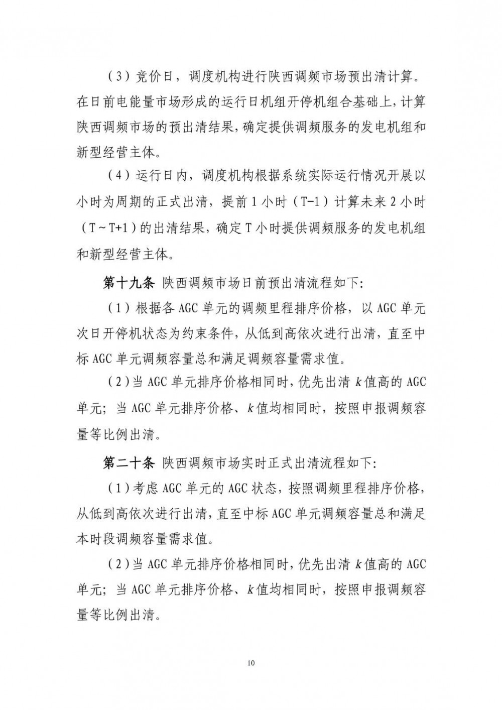 当AGC单元排序价格相同时,优先出清k值高的AGC单元;当AGC单元排序价格、k值均相同时,按照申报调频容量等比例出清。