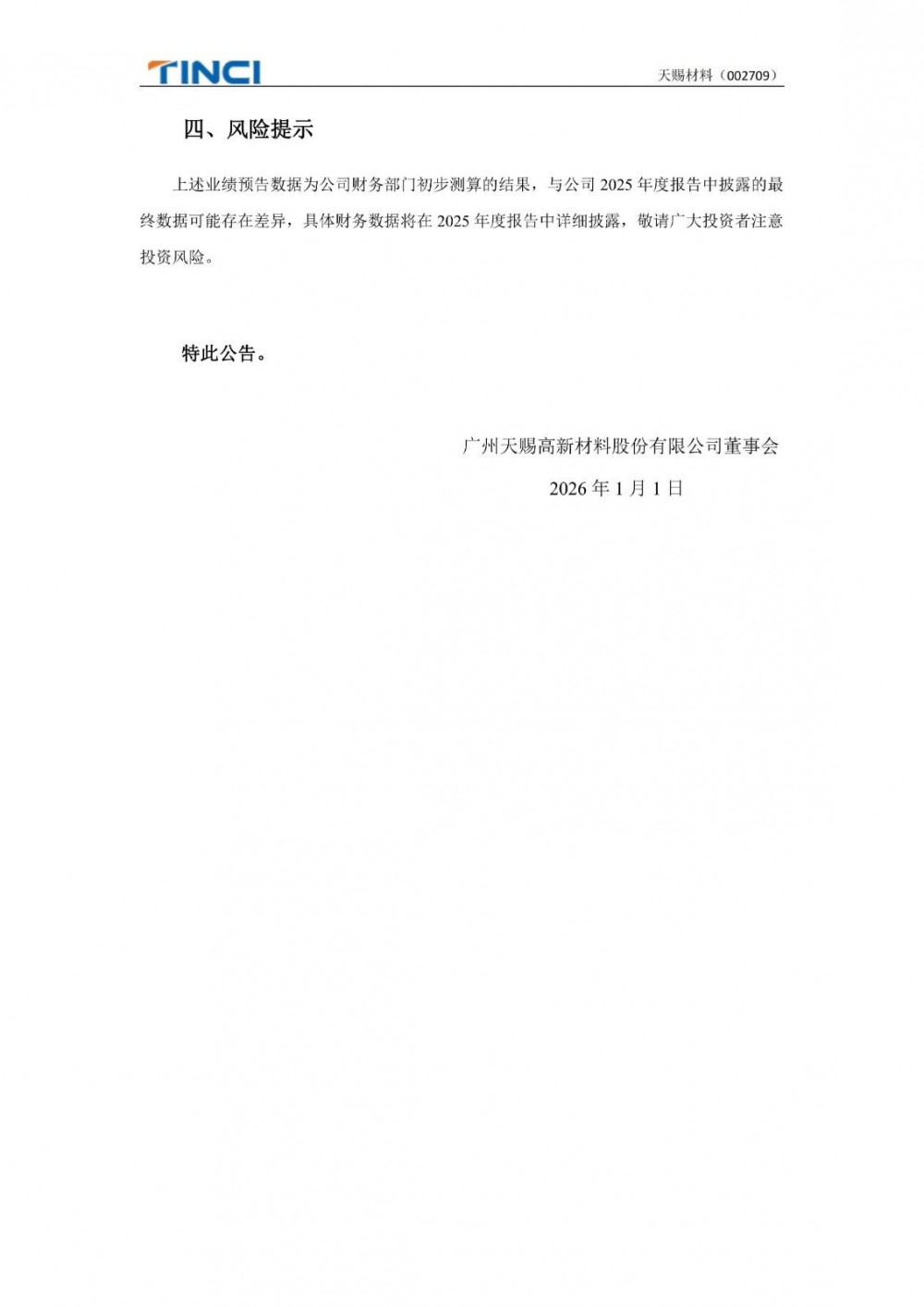 12月31日,天赐材料发布2025年度业绩预告报告,预计2025年归母净利润11亿元至16亿元,同比增长127.31%-230.63%;扣非净利润预计10.5亿元至15.5亿元,同比增长175.16%-306.18%。