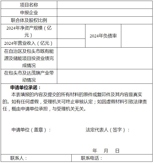 一、本公司(项目公司)已完全理解并同意达茂旗发展和改革委员会的申报要求,同意按照要求提交申报材料并履行承诺的各项内容。