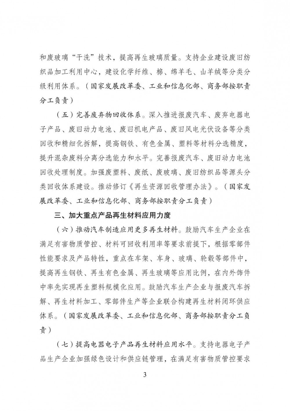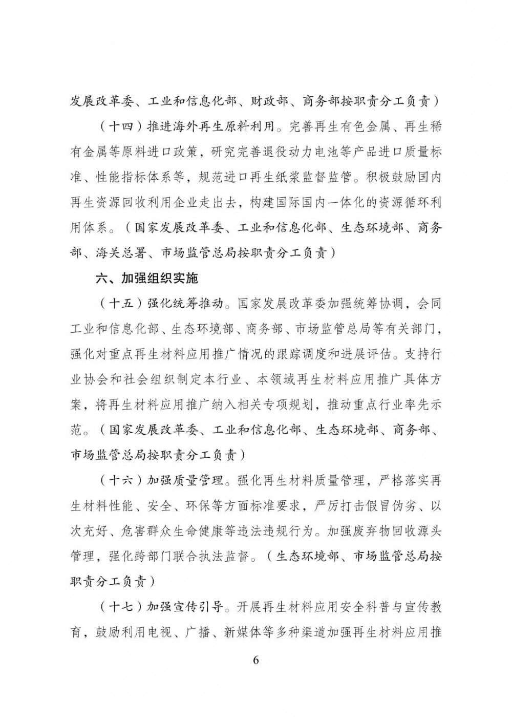 为全面贯彻党的二十大和二十届历次全会精神,认真落实党中央、国务院决策部署,加强再生材料应用推广,完善废弃物循环利用体系,促进循环经济发展,国家发展改革委、工业和信息化部、财政部、生态环境部、商务部、海关总署、市场监管总局等部门制定了《再生材料应用推广行动方案》。现印发给你们,请认真抓好落实。