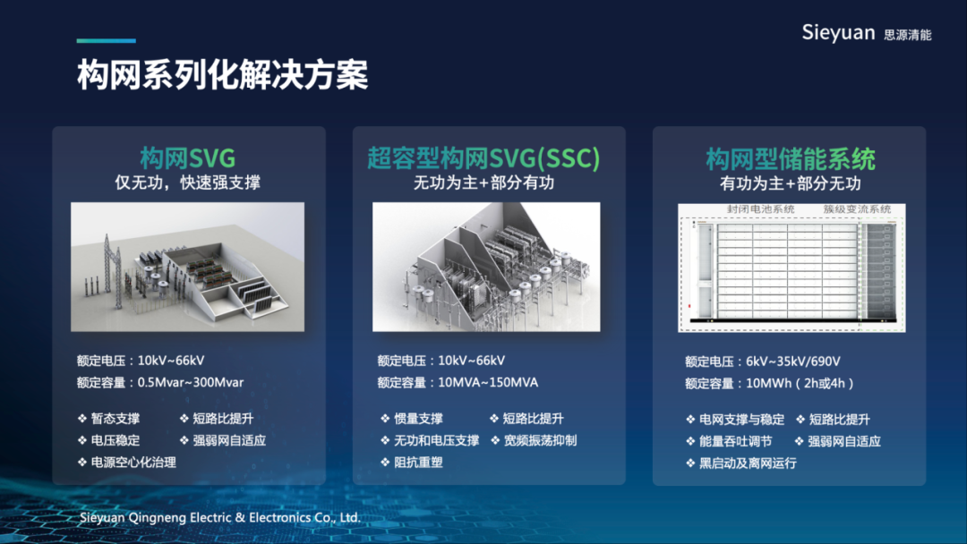 ① 构建电压:依托自研虚拟同步机(VSG)技术,思源清能在系统层面深化先进控制算法与智能保护协同,为电网提供坚实电压支撑。