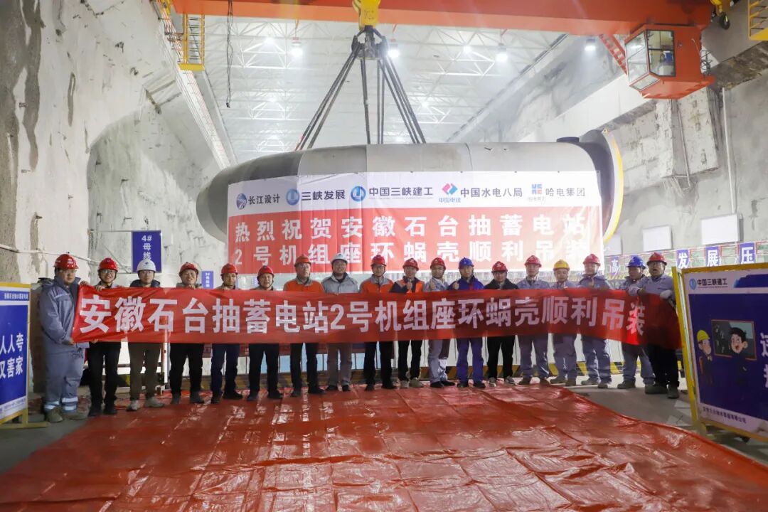 1月8日10时,由三峡发展公司石台监理部承监的安徽石台抽水蓄能电站2号机组座环蜗壳顺利完成吊装。
