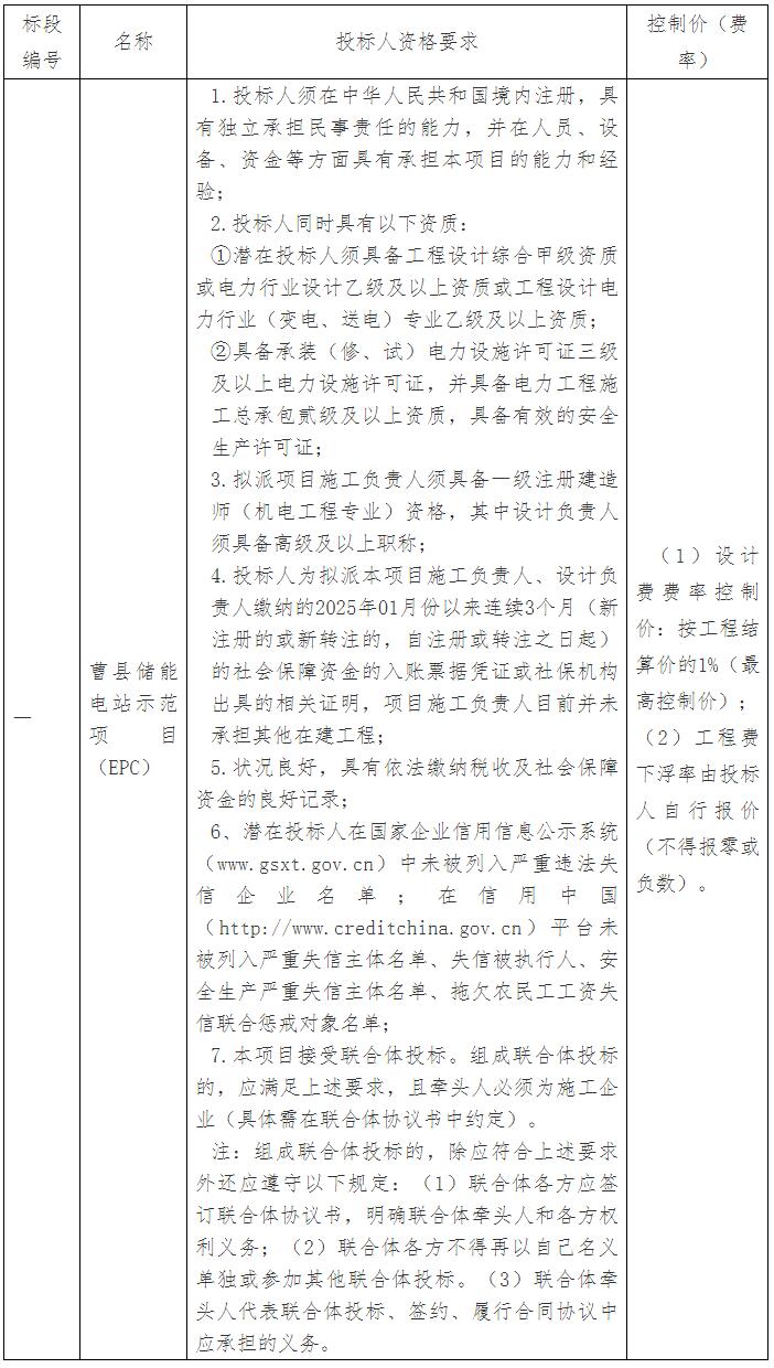 6、招标范围:曹县储能电站示范项目(EPC)的工程设计、施工等。(具体详见招标文件);