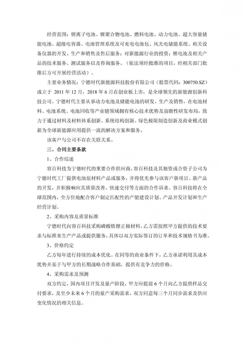 1月13日,容百科技发布公告称,公司与宁德时代新能源科技股份有限公司签署了《磷酸铁锂正极材料采购合作协议》。