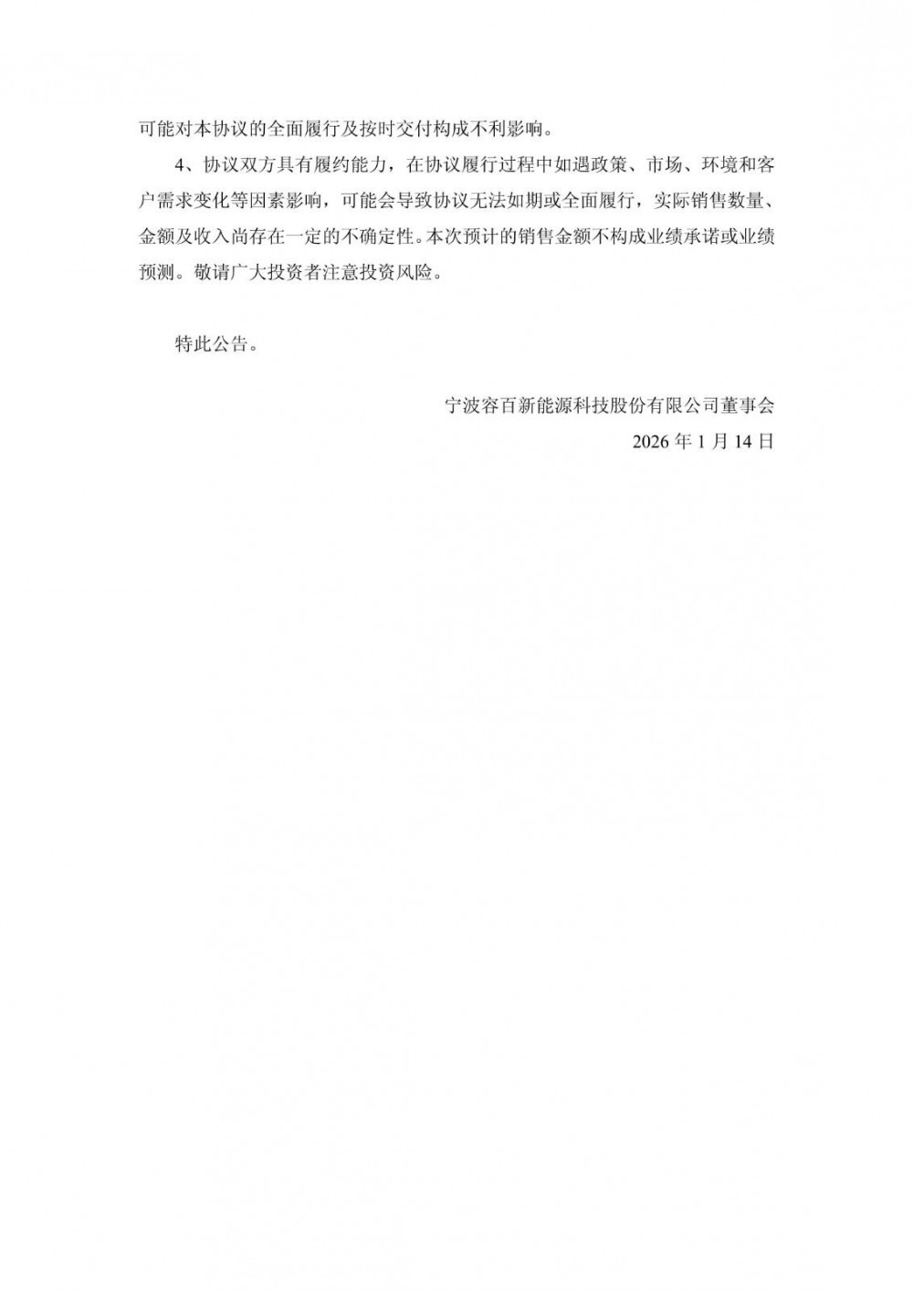 容百科技表示,本协议的履行,预计将对公司未来经营业绩产生积极且重要影响,并进一步增强公司经营的稳定性与抗周期能力。具体对各年度业绩的影响情况,请以公司后续披露的定期报告为准。
