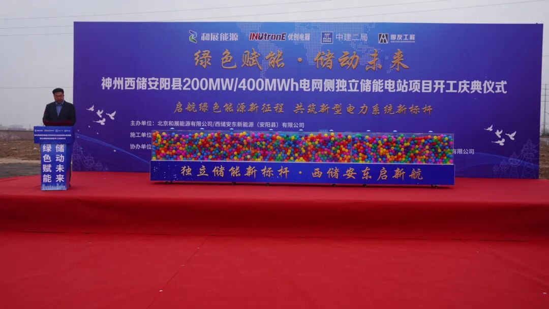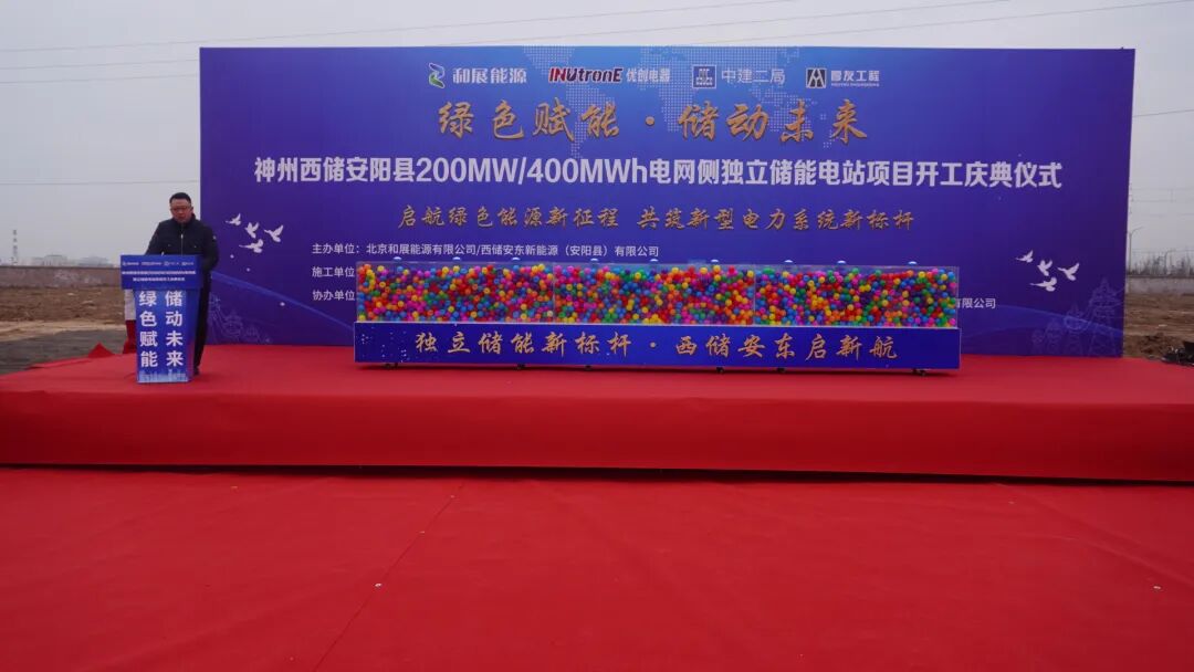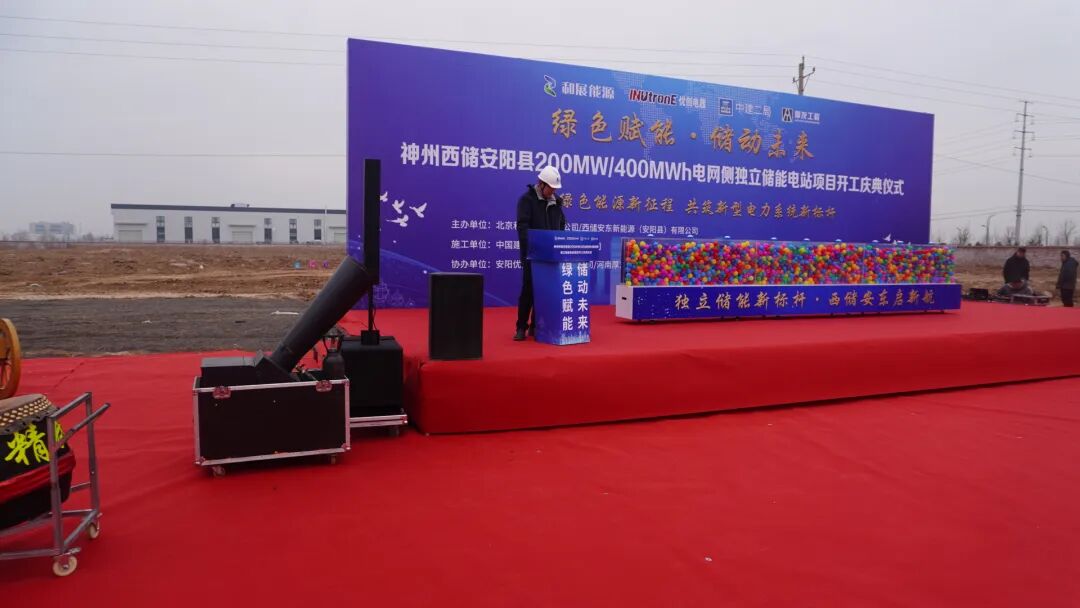 2026年1月14日上午11时,以“绿色赋能·储动未来”为主题的神州西储安阳县200MW/400MWh电网侧独立储能电站项目开工庆典仪式在安阳县(示范区)文昌大道与新裴东路交叉口项目现场隆重举行。该项目是安阳县积极响应国家“双碳”战略、加快构建新型电力系统的重要举措,对于提升区域电网调节能力、促进新能源消纳、保障能源安全具有里程碑式的意义。