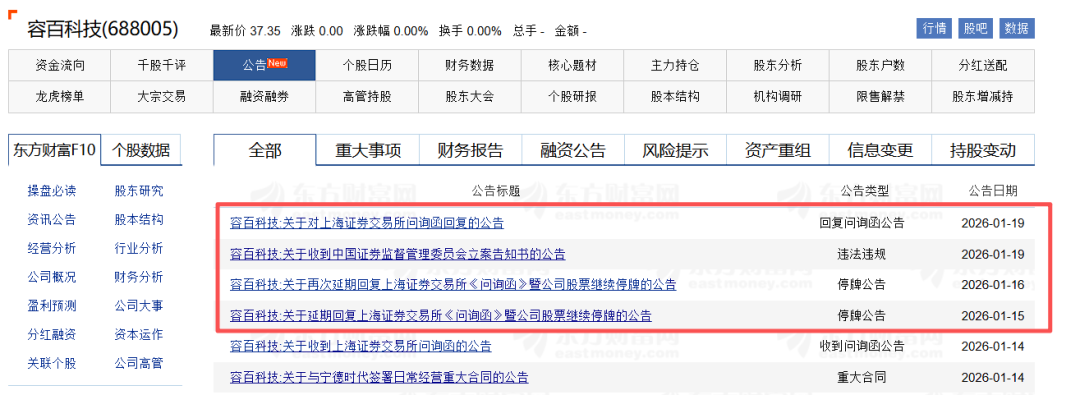 直到1月18日晚间,在证监会宣布立案调查同日,容百科技才最终发布公告回复上交所问询函。