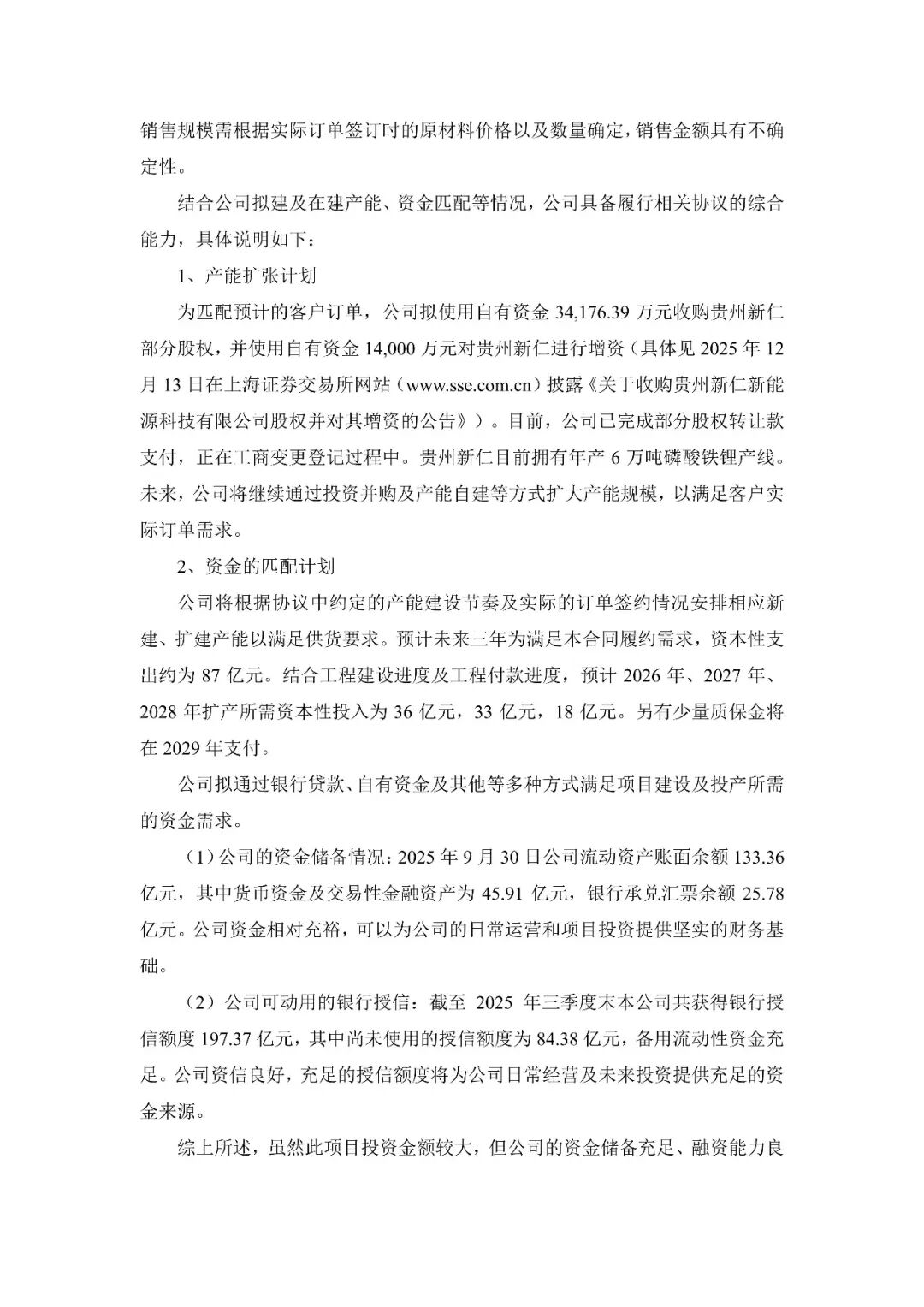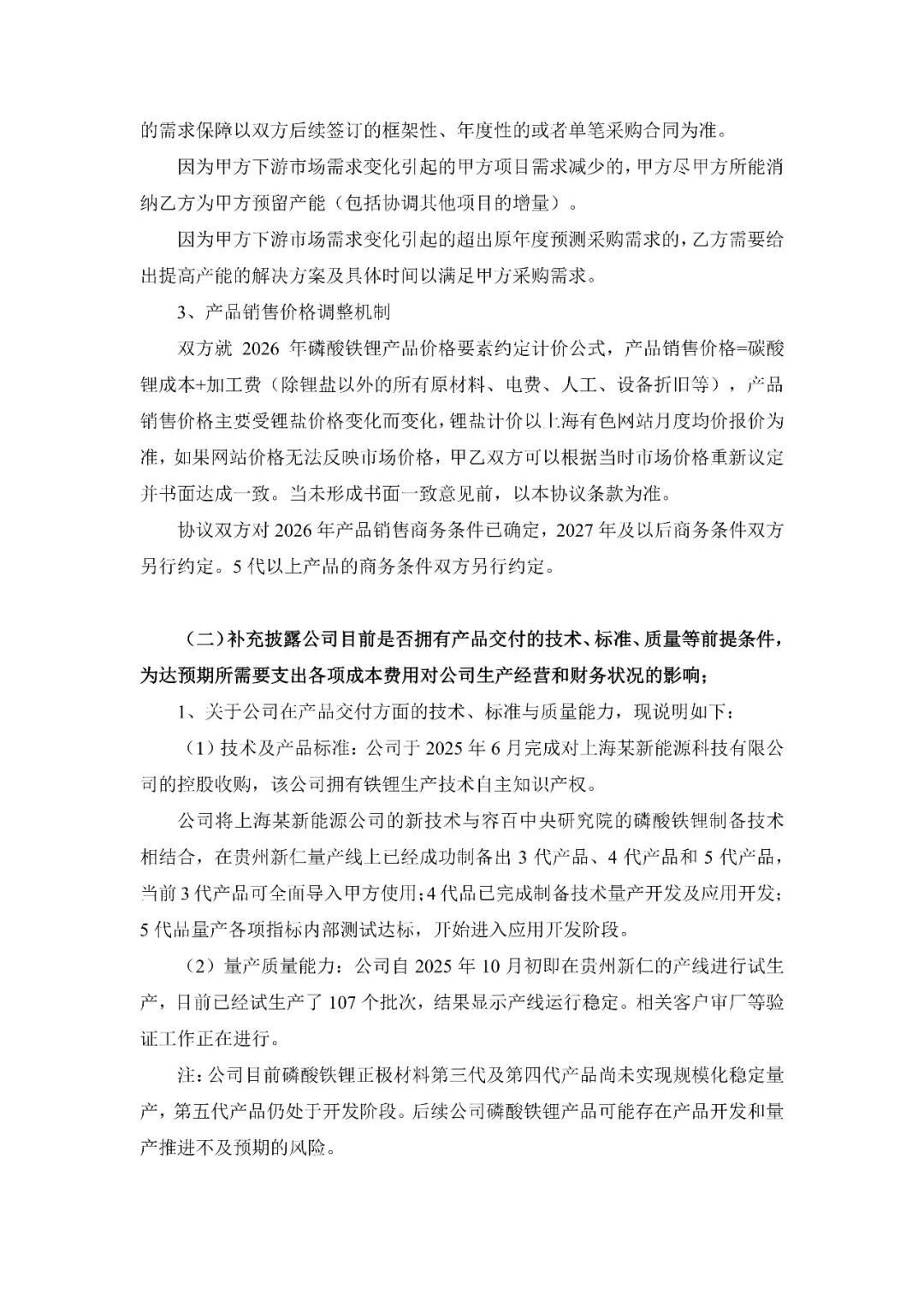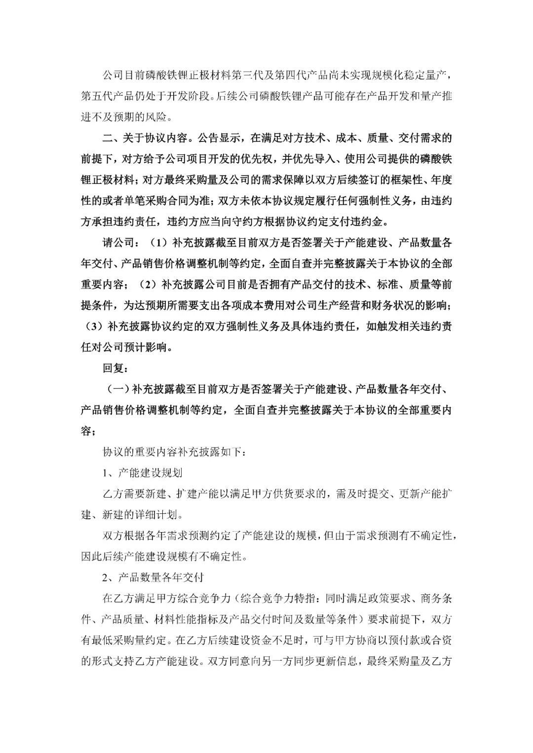 此外,公司目前磷酸铁锂正极材料第三代及第四代产品尚未实现规模化稳定量产,第五代产品仍处于开发阶段。后续公司磷酸铁锂产品可能存在产品开发和量产推进不及预期的风险。