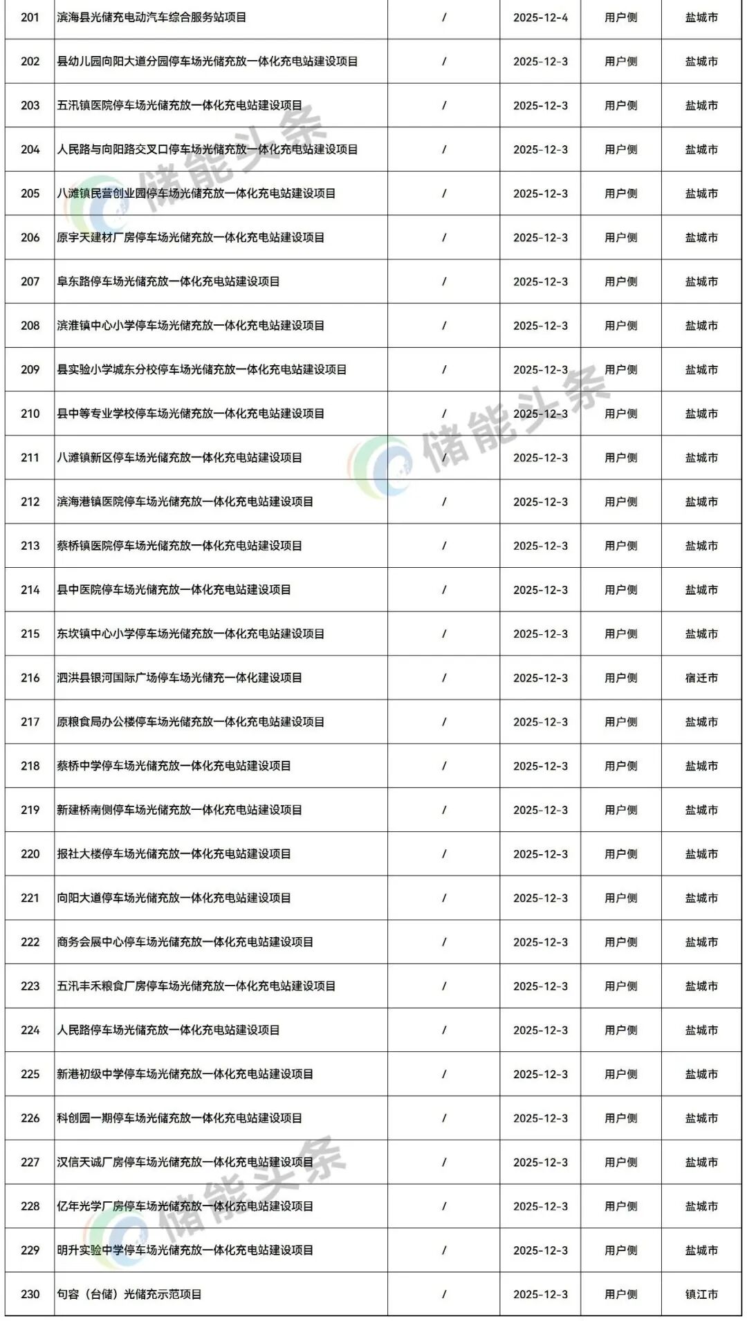 根据能源圈对公开信息不完全统计,2025年12月江苏省共完成230个储能项目备案,备案规模4685.923MW/9305.08MWh,备案项目有储能电站、分布式用户储能以及光储充项目等。