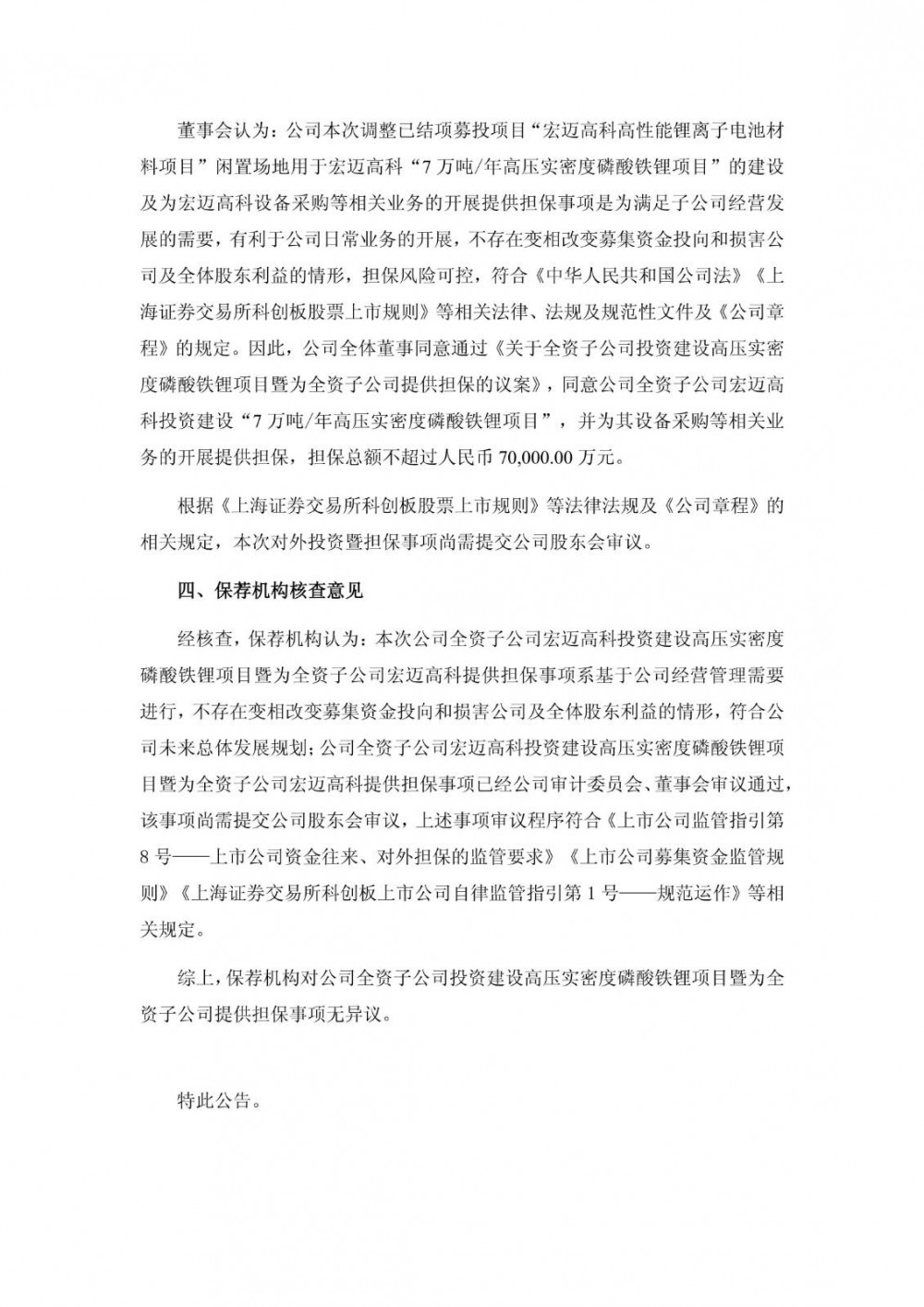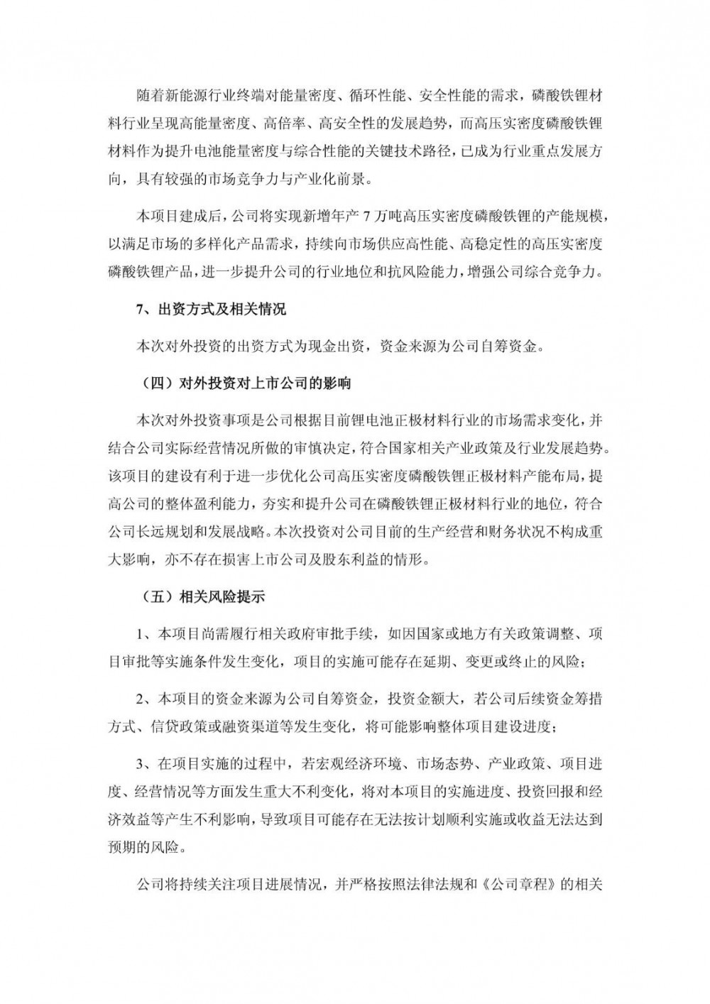 1月16日,万润新能发布公告称,公司全资子公司湖北宏迈高科新材料有限公司拟投资建设“7 万吨/年高压实密度磷酸铁锂项目”。本项目总投资金额为 107,906.59 万元(最终投资金额以实际投资为准),其中固定资产投资 69,541.76 万元,铺底流动资金 38,364.83 万元,资金来源为公司自筹资金。