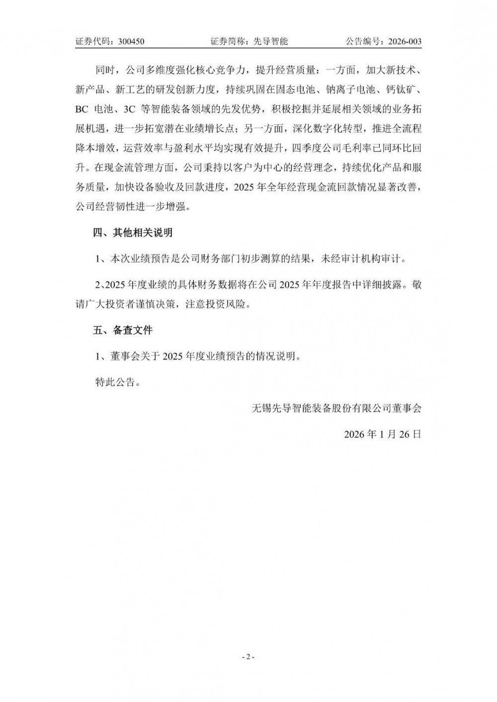 对于盈利原因,先导智能表示,2025年全球动力电池市场持续回暖,储能领域需求强劲增长,行业整体需求持续复苏,公司在新能源智能装备领域的龙头地位进一步巩固。随着国内头部电池企业开工率提升、扩产节奏有序加快,公司订单规模同比快速回升,订单交付与项目验收节奏同步提速,推动了公司经营业绩的筑底回升与快速增长,整体盈利能力明显提升。