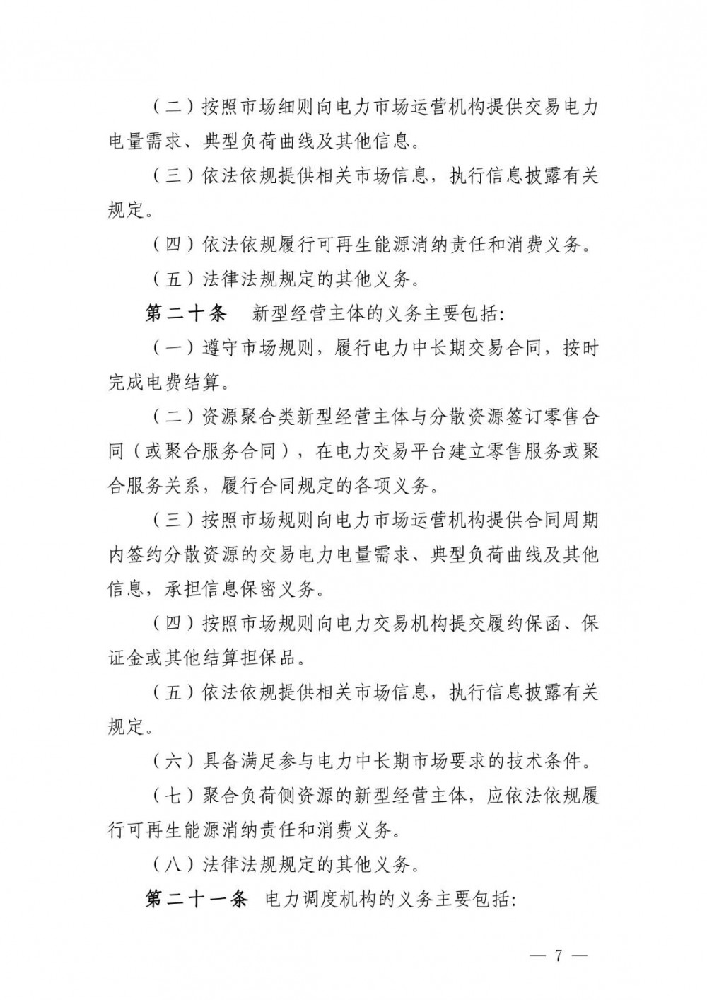 经营主体包括已在电力交易机构完成市场注册手续的各类型发电企业(含抽水蓄能电站)、售电公司、电力用户、新型经营主体。新型经营主体包括调度调用新型储能、独立参与市场的负荷侧可调节资源、通过聚合方式代理相关资源参与市场的负荷聚合商或负荷类虚拟电厂;其中调度调用新型储能是指具备独立计量装置,并且按照市场出清结果或电力调度机构指令运行的新型储能,包括独立储能电站、具备条件独立运行的新能源配建储能等。