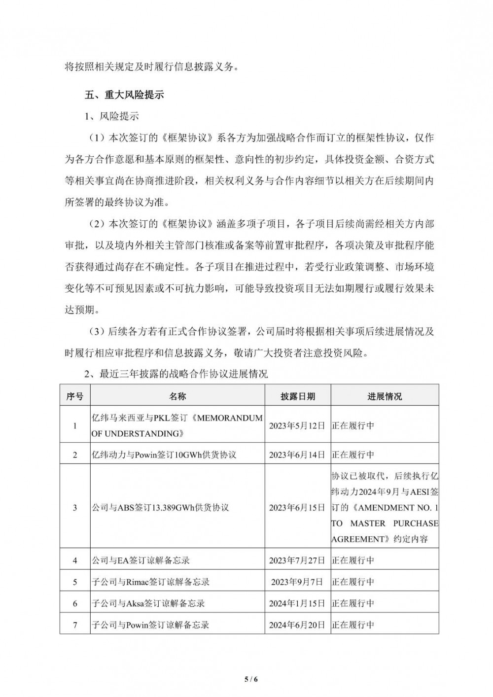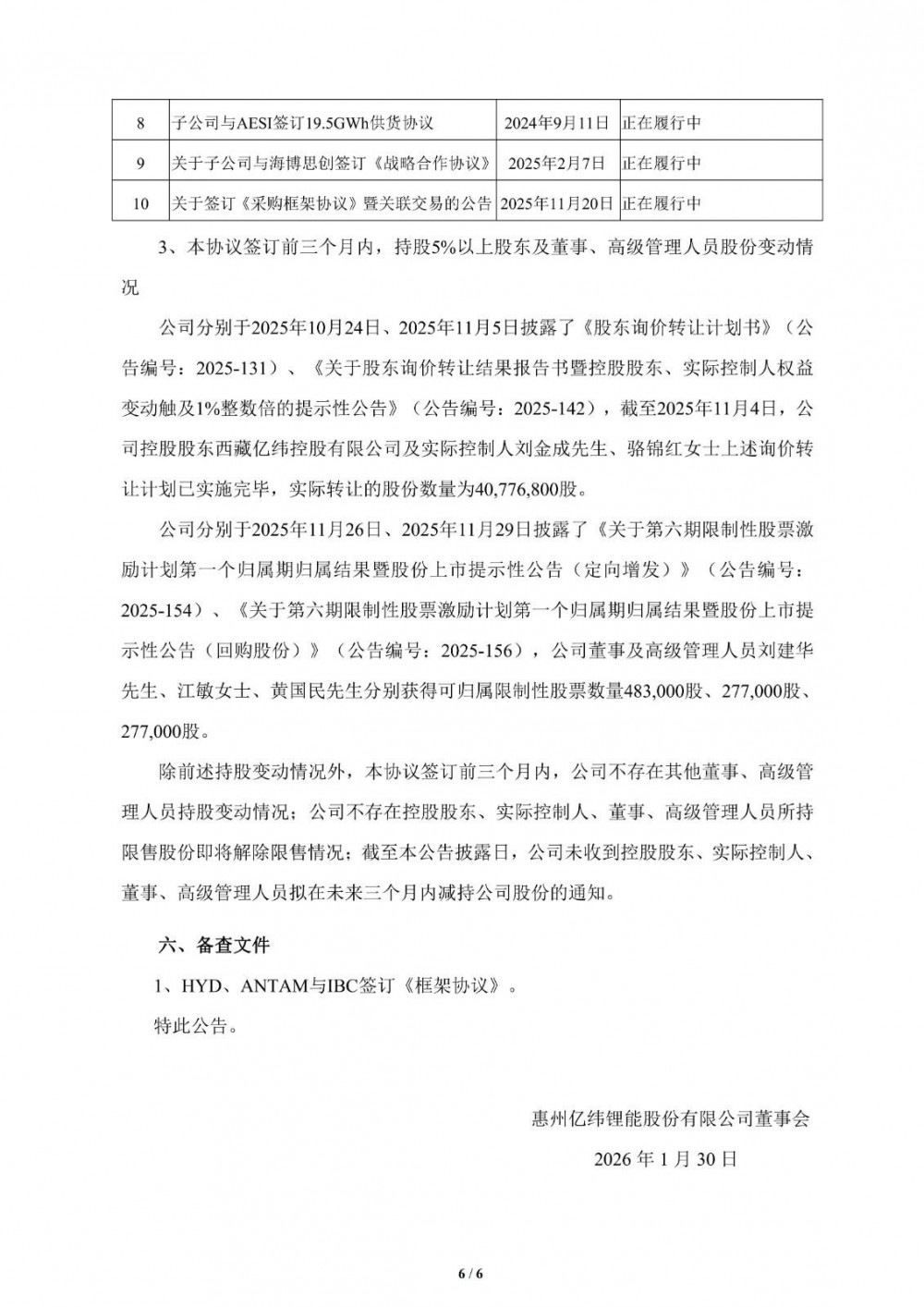 亿纬锂能表示,公司参股公司HYD本次与ANTAM、IBC签署战略合作框架协议,系各方拟于印度尼西亚联合布局新能源汽车电池全产业链的重要战略举措。此举将充分整合各方在资源禀赋及产业链布局等领域的核心优势,进一步拓展公司在印尼市场的业务纵深,持续强化公司全球供应链协同效应。本协议的签署契合公司长远发展规划,有利于切实保障全体股东利益最大化。