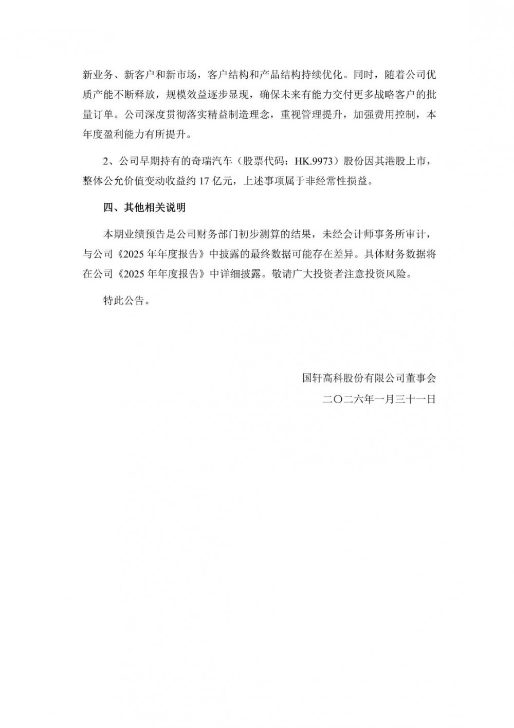 国轩高科2025年度业绩与上年同期相比实现增长,受益于新能源汽车及储能市场需求的快速增长,公司新一代高能量密度磷酸铁锂电池产品销量同比大幅提升。公司坚定推进国际化战略,在深化与战略客户合作的同时,积极开拓新业务、新客户和新市场,客户结构和产品结构持续优化。同时,随着公司优质产能不断释放,规模效益逐步显现,确保未来有能力交付更多战略客户的批量订单。公司深度贯彻落实精益制造理念,重视管理提升,加强费用控制,本年度盈利能力有所提升。