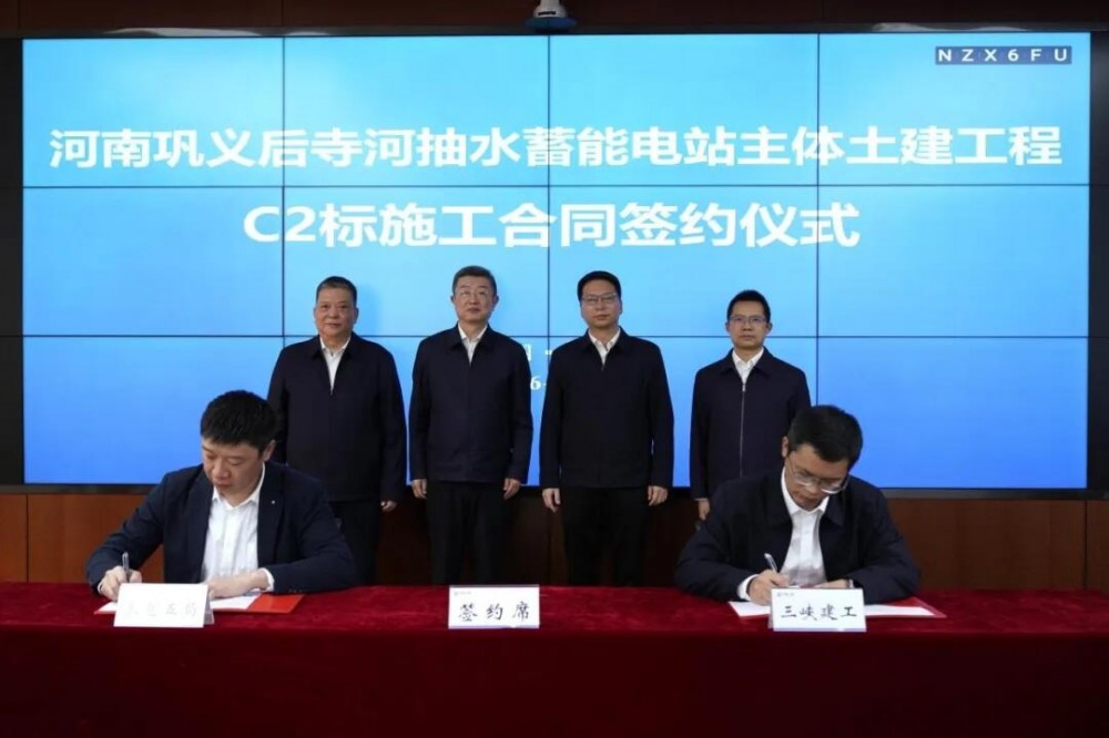 2月3日,河南巩义后寺河抽水蓄能电站主体土建及金属结构安装工程合同签约仪式在成都举行。三峡建工董事长、党委书记高鹏,水电十一局董事长、党委书记朱晓明,水电五局董事长、党委书记李峥出席签约仪式并致辞。三峡建工副总经理、党委委员段兴平主持签约仪式。