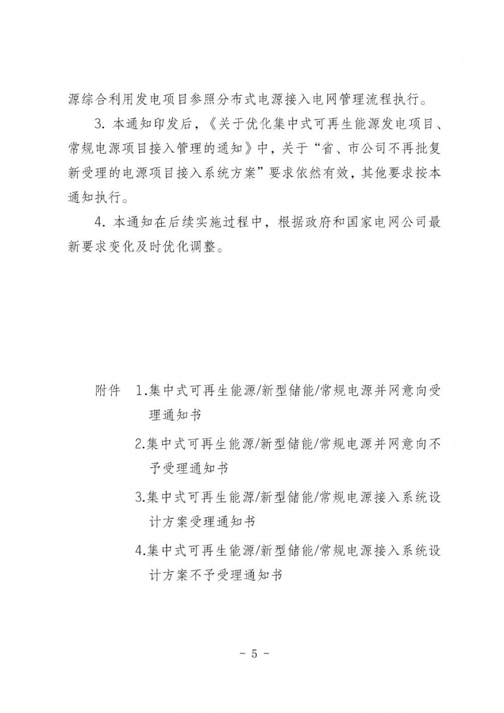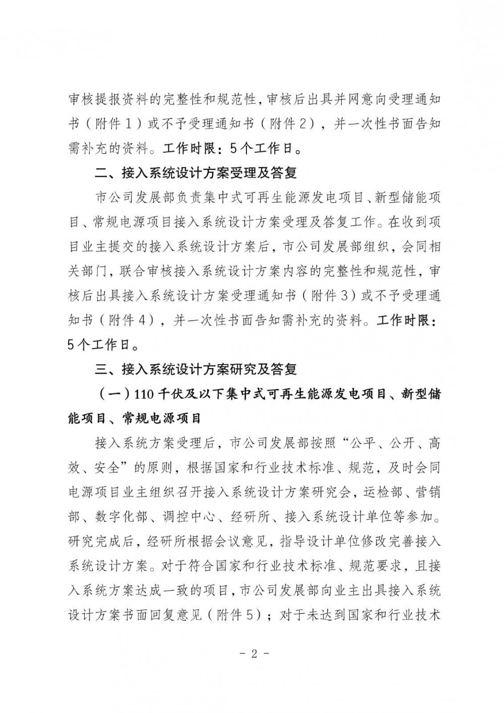 集中式可再生能源发电项目、新型储能项目、常规电源项目并网意向受理及答复、接入系统设计方案受理及答复工作时限均为为5个工作日。