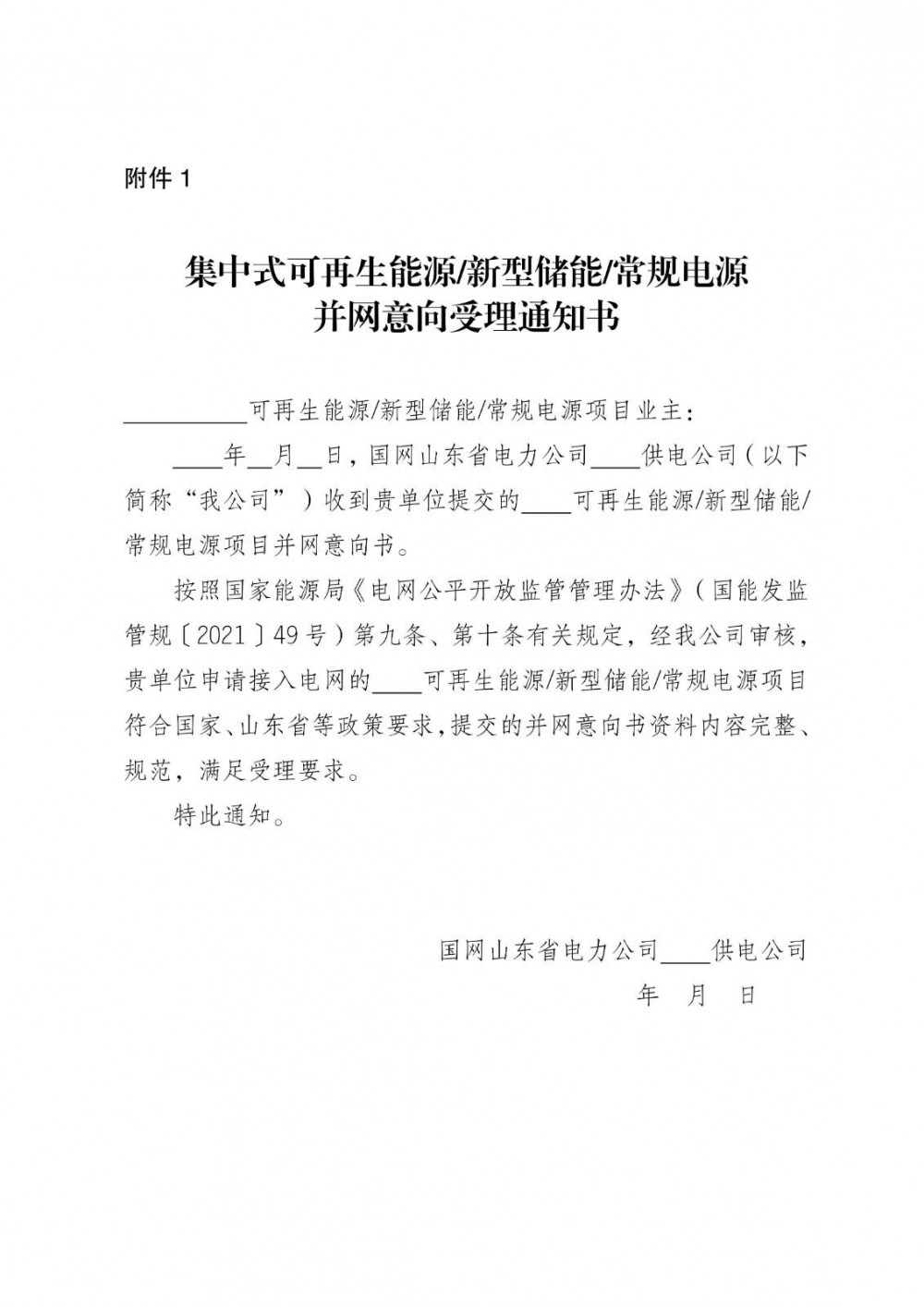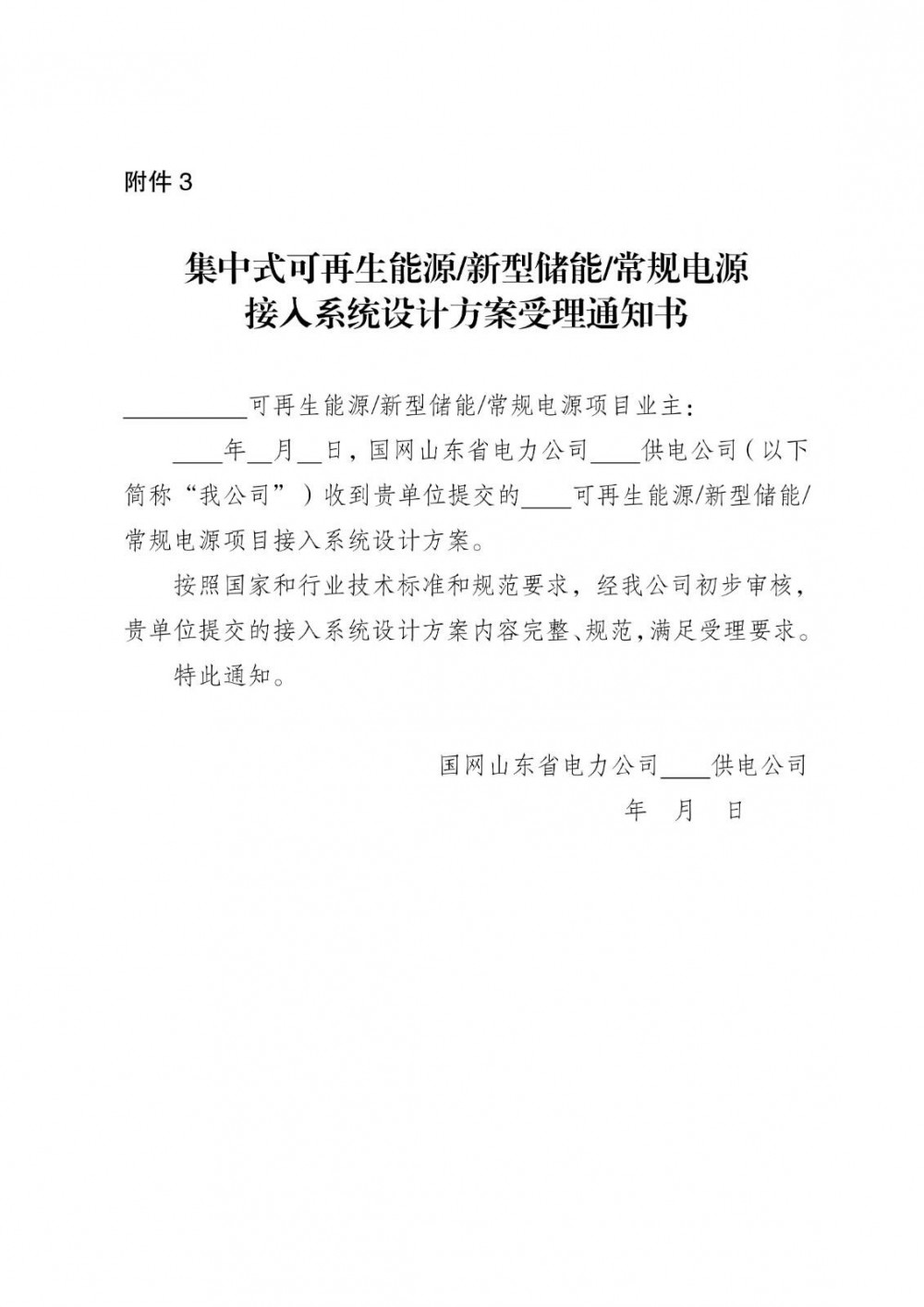 通知内容涵盖并网意向受理与答复、接入系统设计方案受理与答复、接入系统设计方案研究与答复以及接网协议签订等环节。