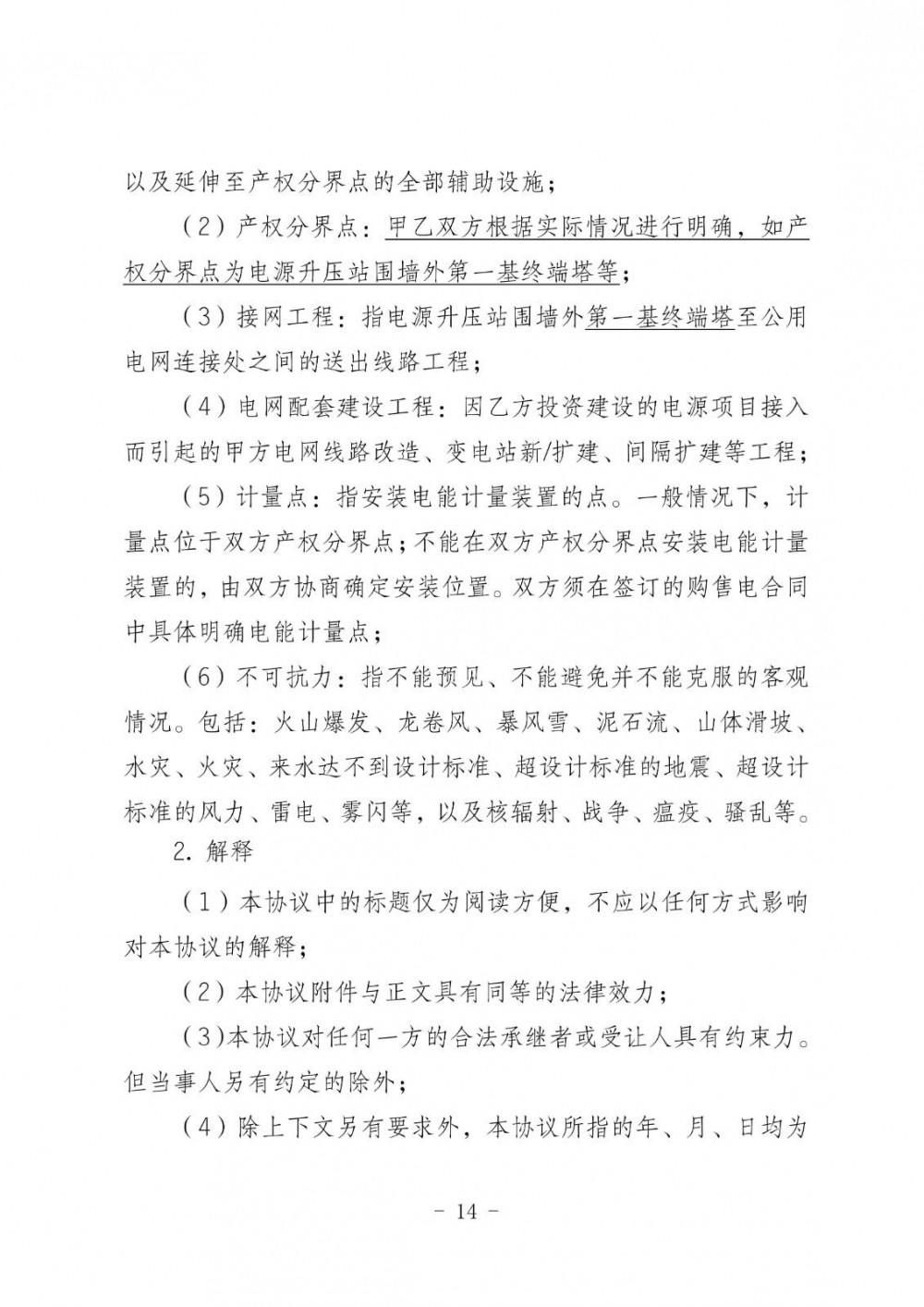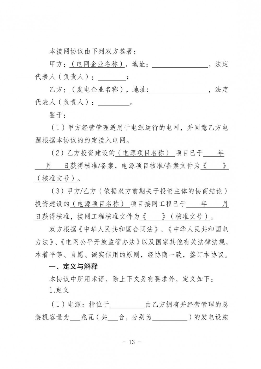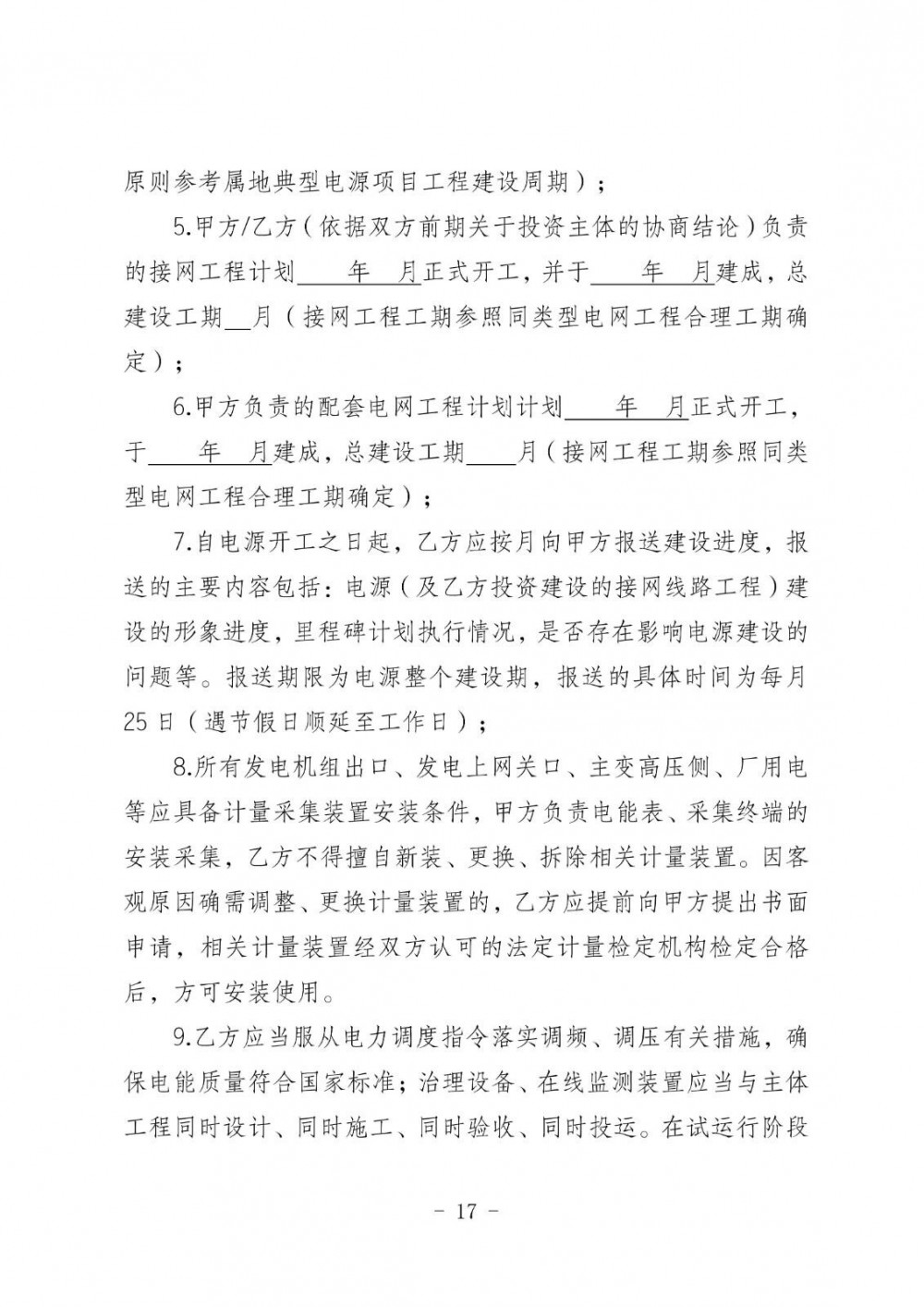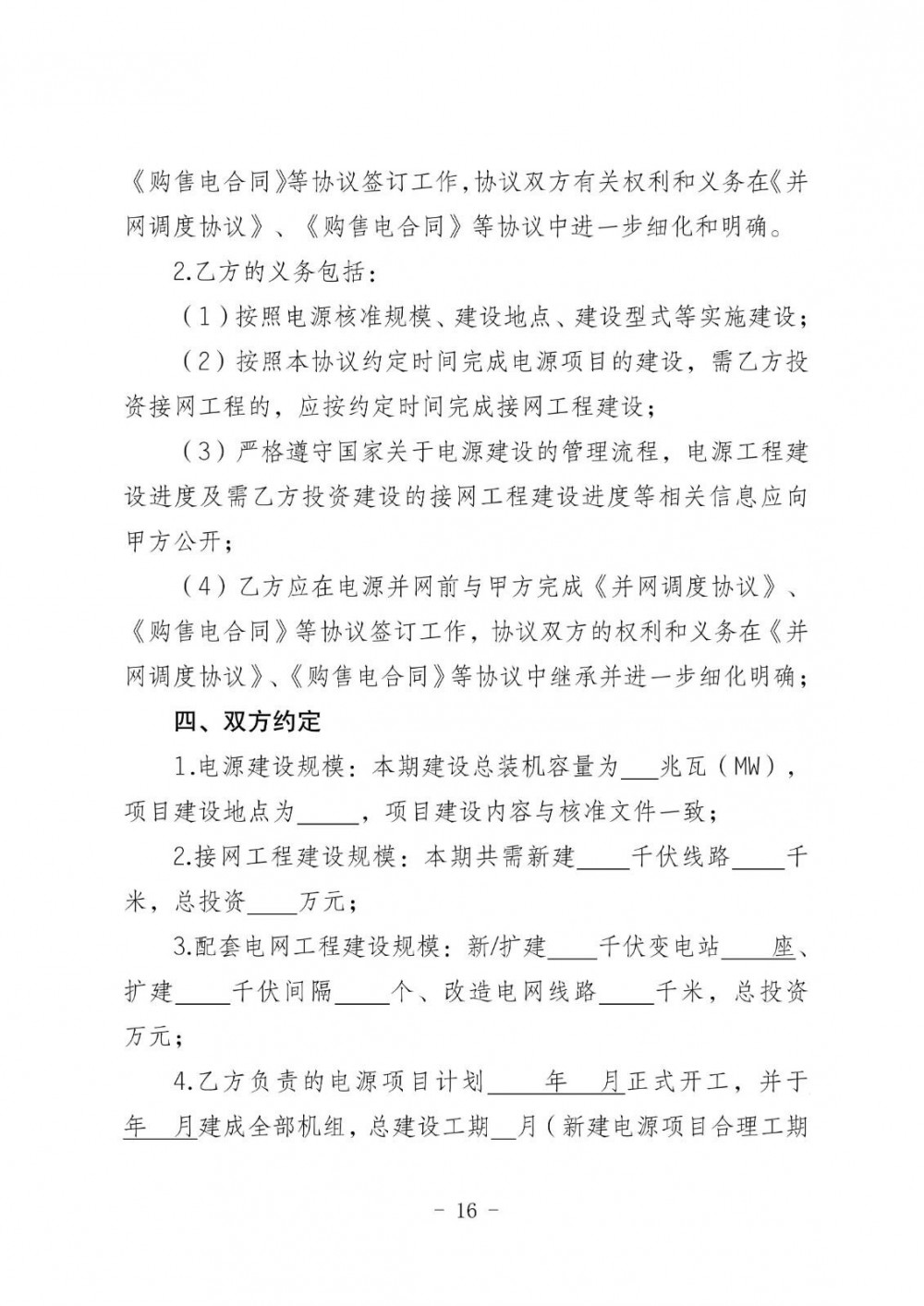 在接网协议签订方面,协议需明确电源本期规模、开工与投产时间、配套送出工程投产时间、产权分界点、计量点、电能质量要求及违约责任等内容。签订时限分为两种情况:需新建接网工程的项目,在电源本体与接网工程均核准(备案)后30个工作日内完成;无需新建接网工程的项目,则在正式回复接入系统设计方案后30个工作日内完成。