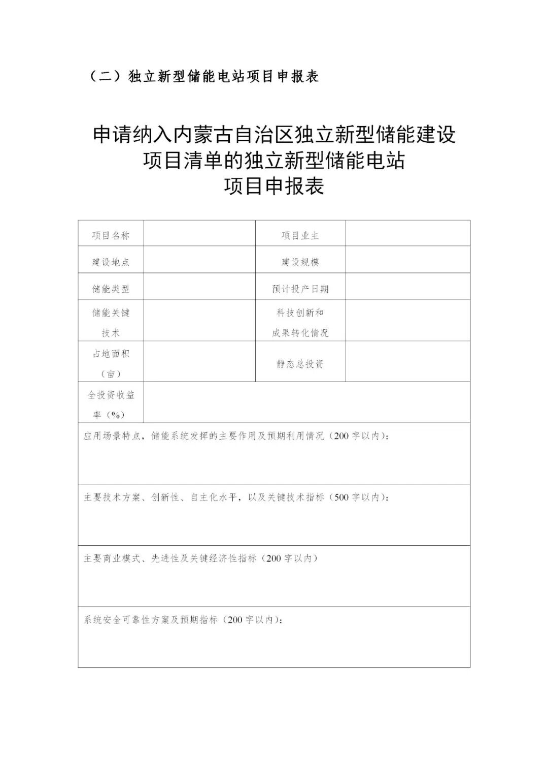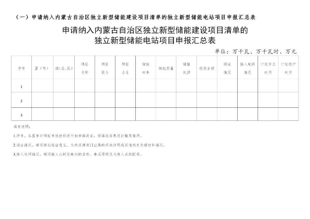 主要包括独立新型储能电站项目申报汇总表、独立新型储能电站项目申报表、项目申报书(包含附件内容)等。