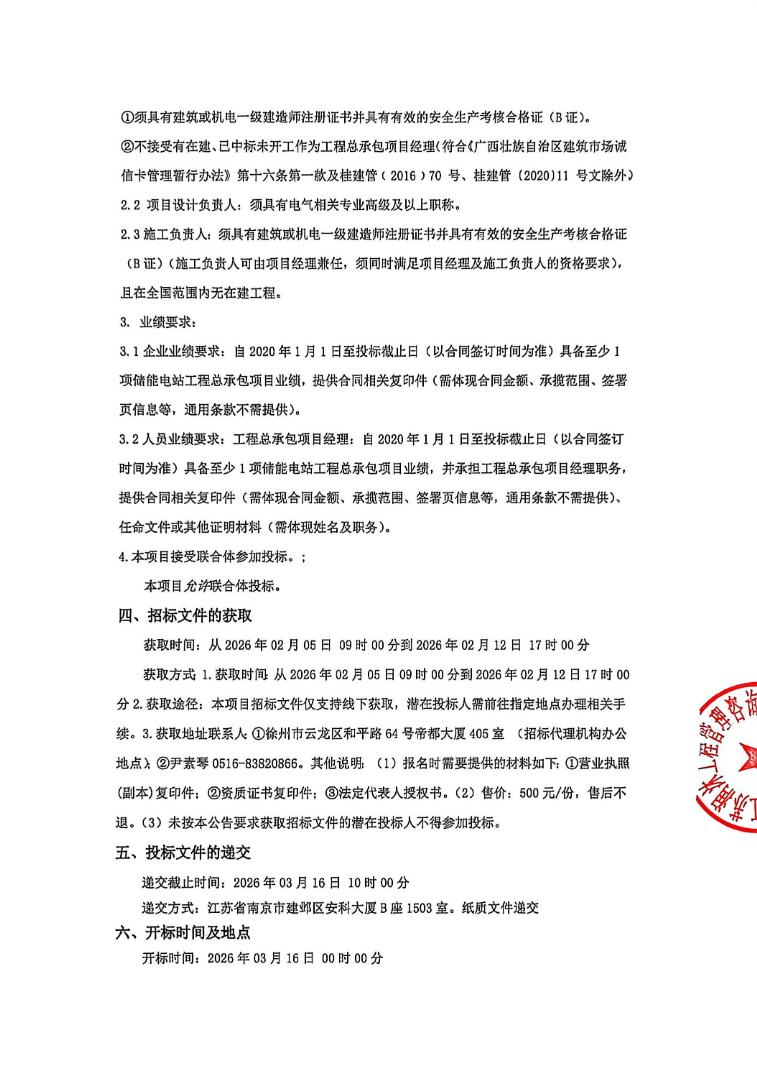 项目要求投标人六年内具备至少1项储能电站工程总承包项目业绩;工程总承包项目经理六年内具备至少1项储能电站工程总承包项目业绩,并承担工程总承包项目经理职务。