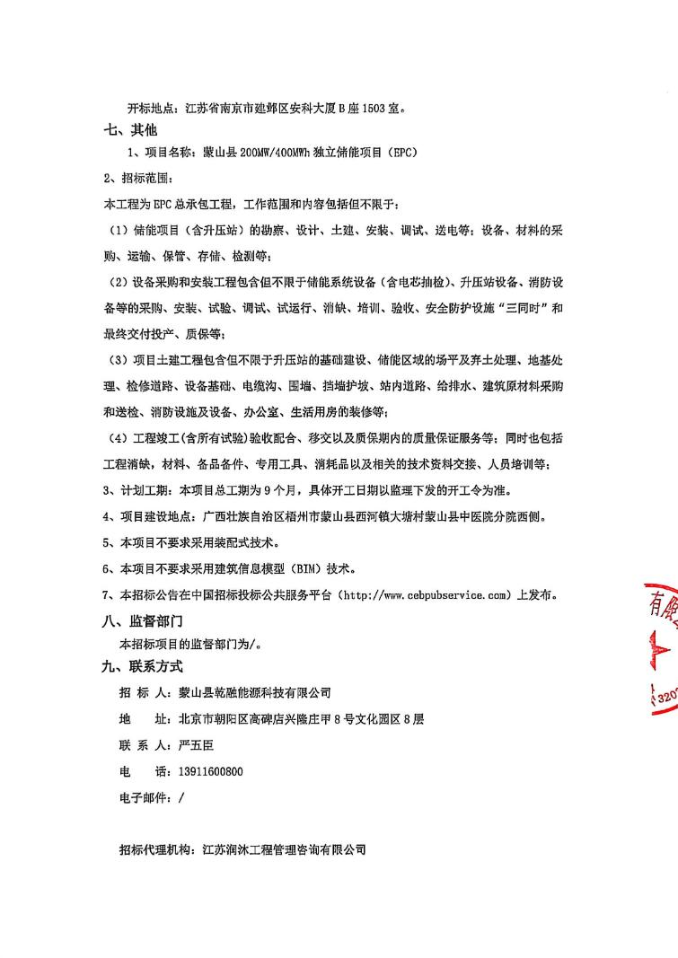 2026年2月4日,蒙山县200MWW/400MWh独立储能项目EPC招标公告发布,项目总投资52470.2万元,合单价1.31元/Wh。