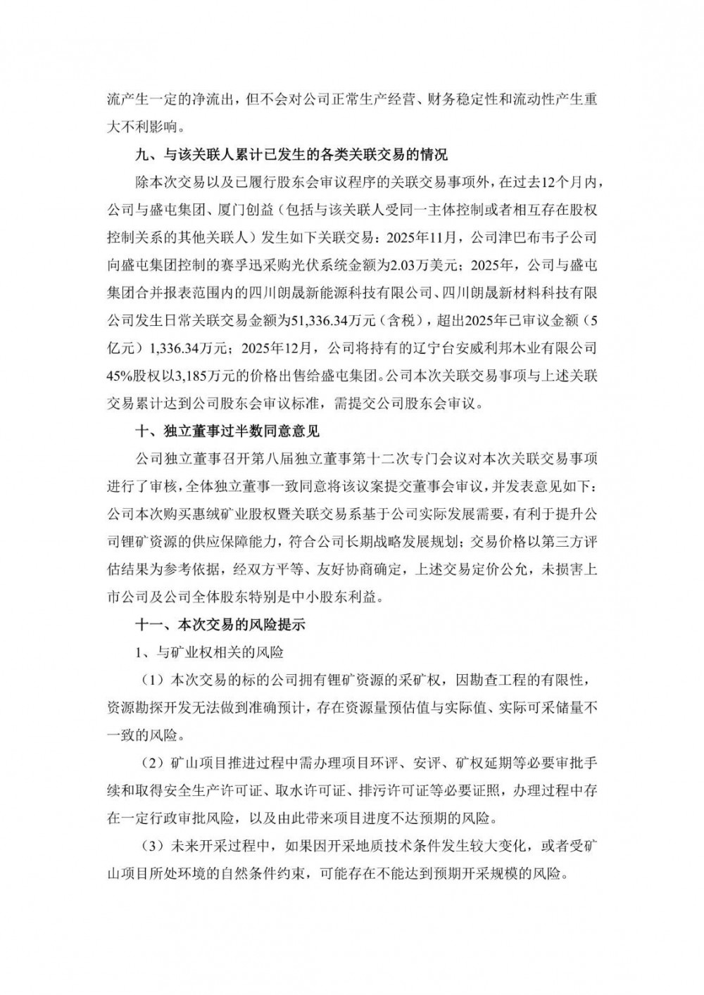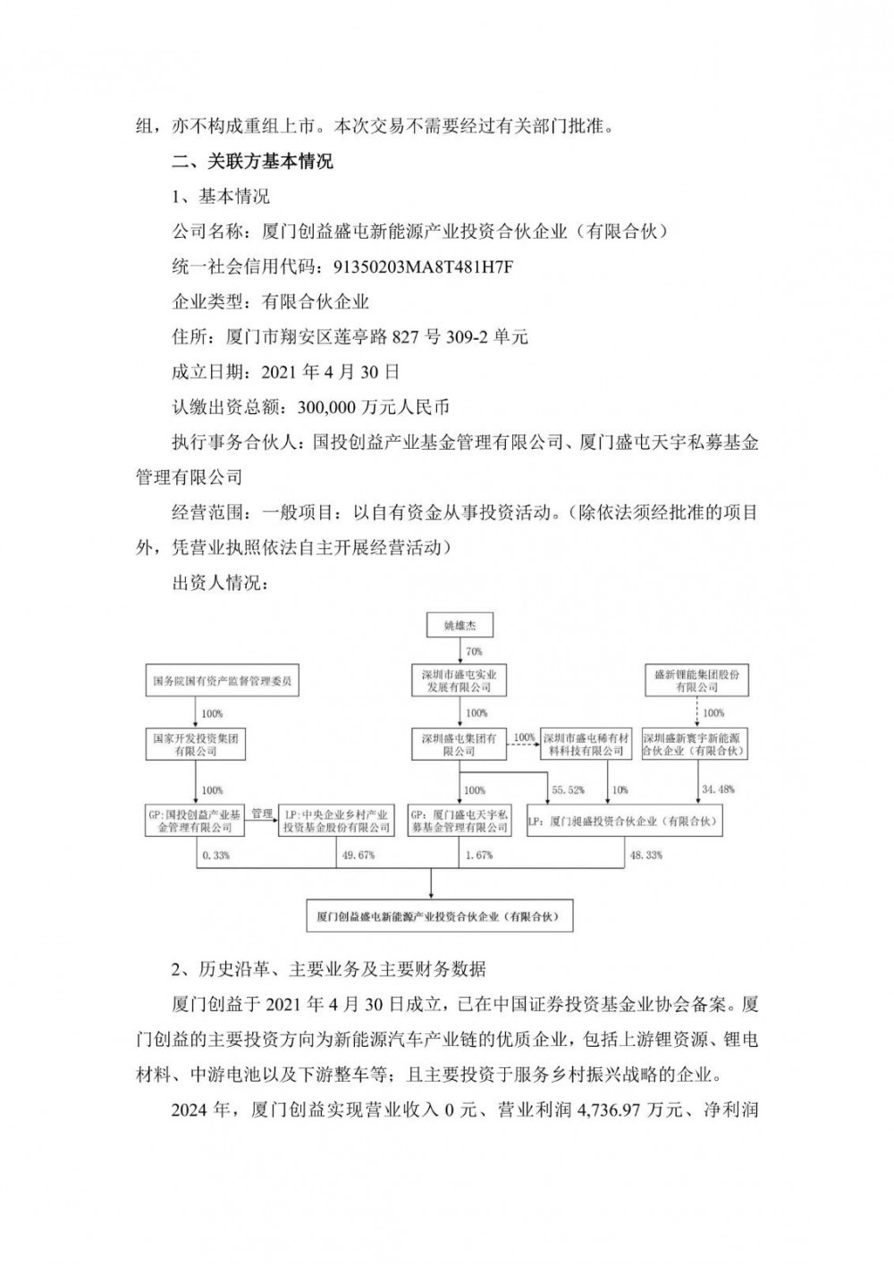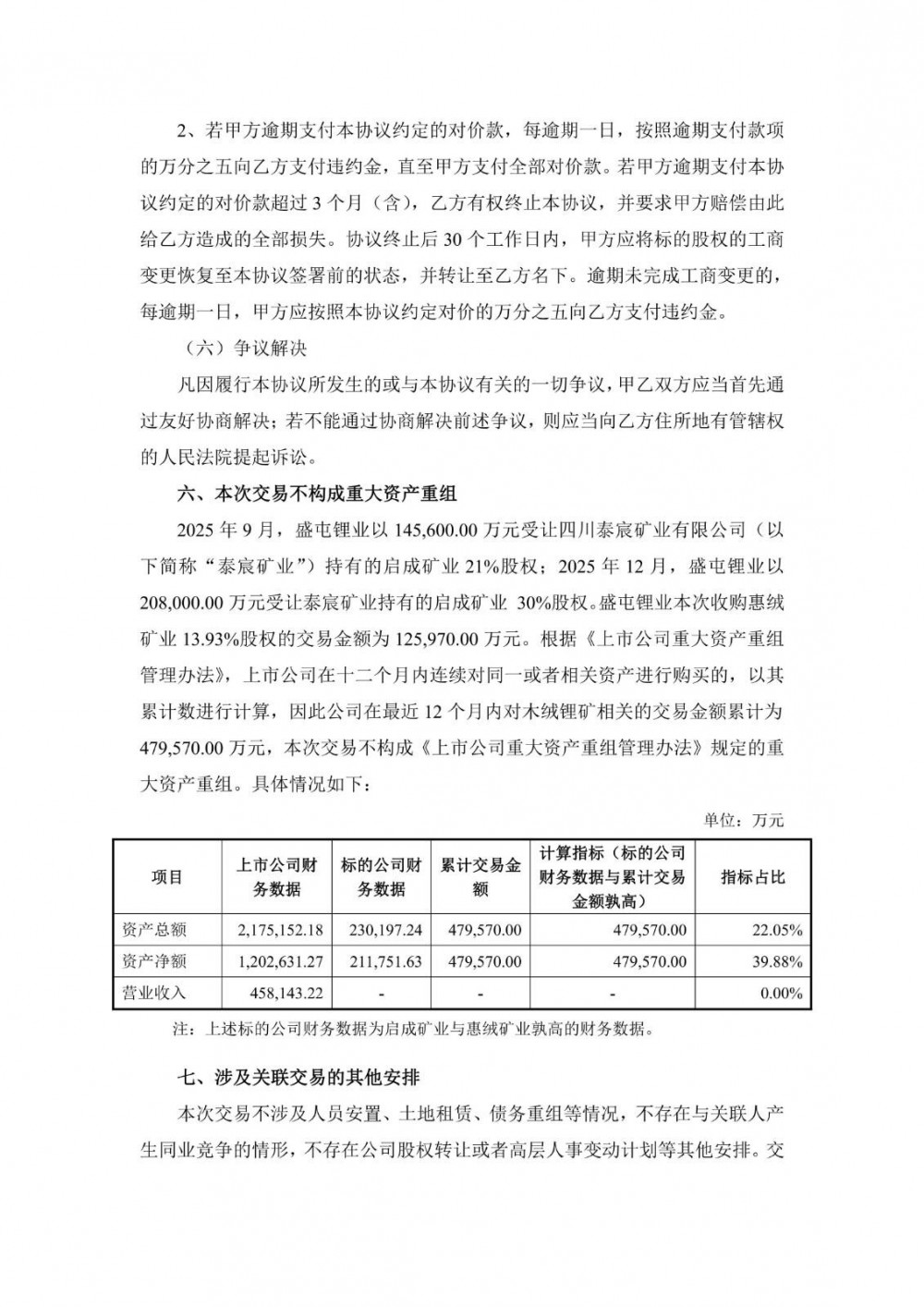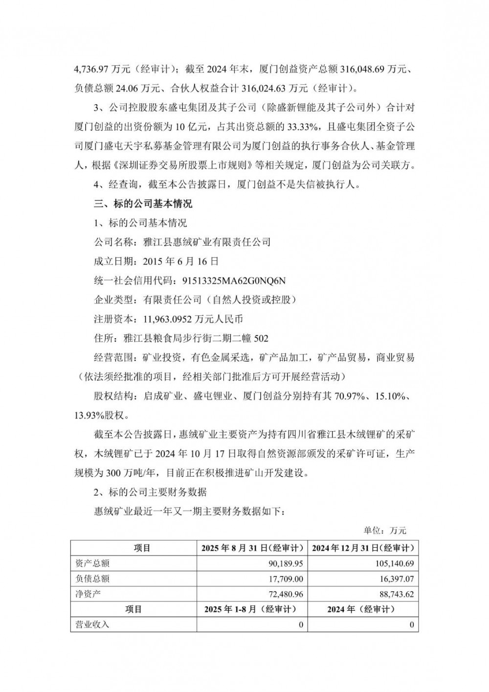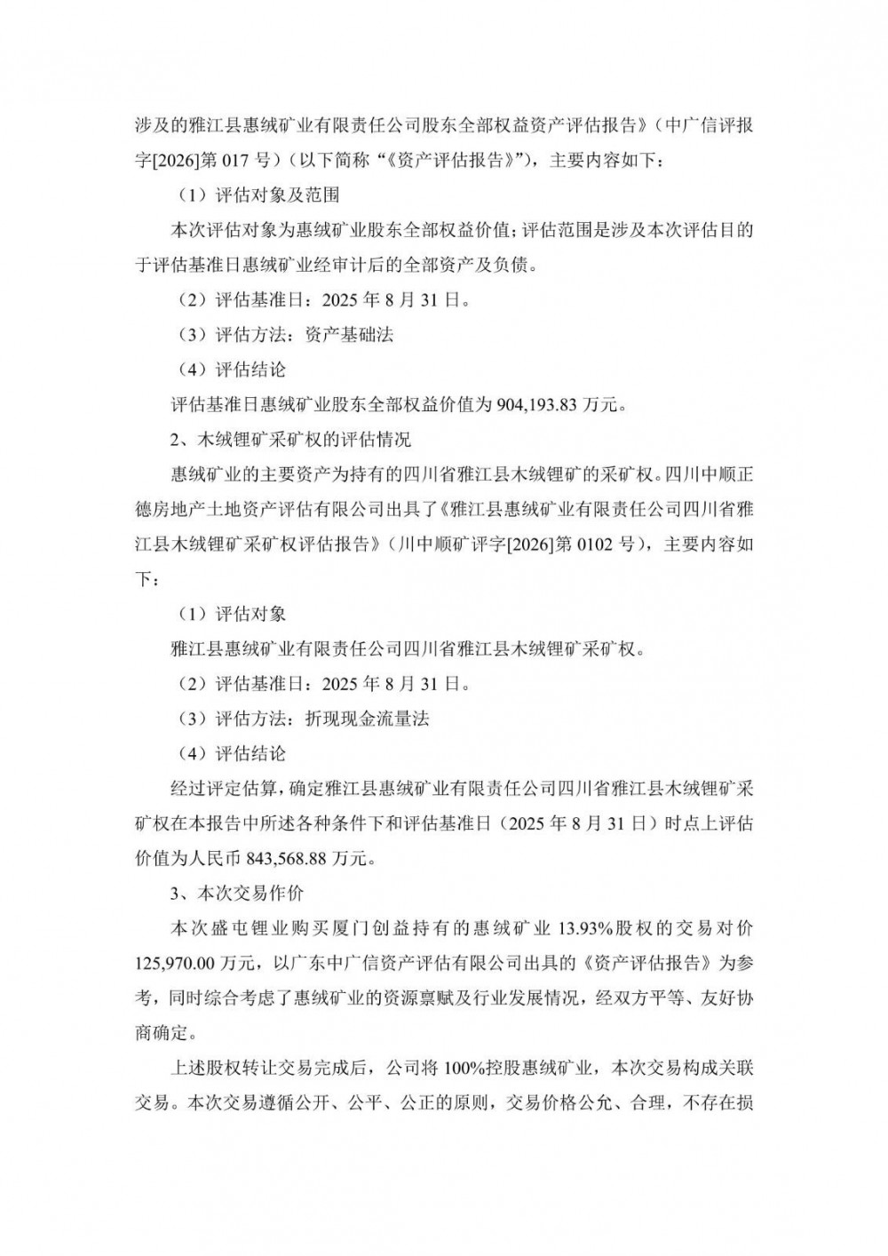 2月4日,盛新锂能发布公告称,公司全资子公司四川盛屯锂业有限公司拟以现金人民币125,970.00万元收购厦门创益盛屯新能源产业投资合伙企业(有限合伙)持有的雅江县惠绒矿业有限责任公司13.93%股权,本次交易完成后,公司将100%控股惠绒矿业。