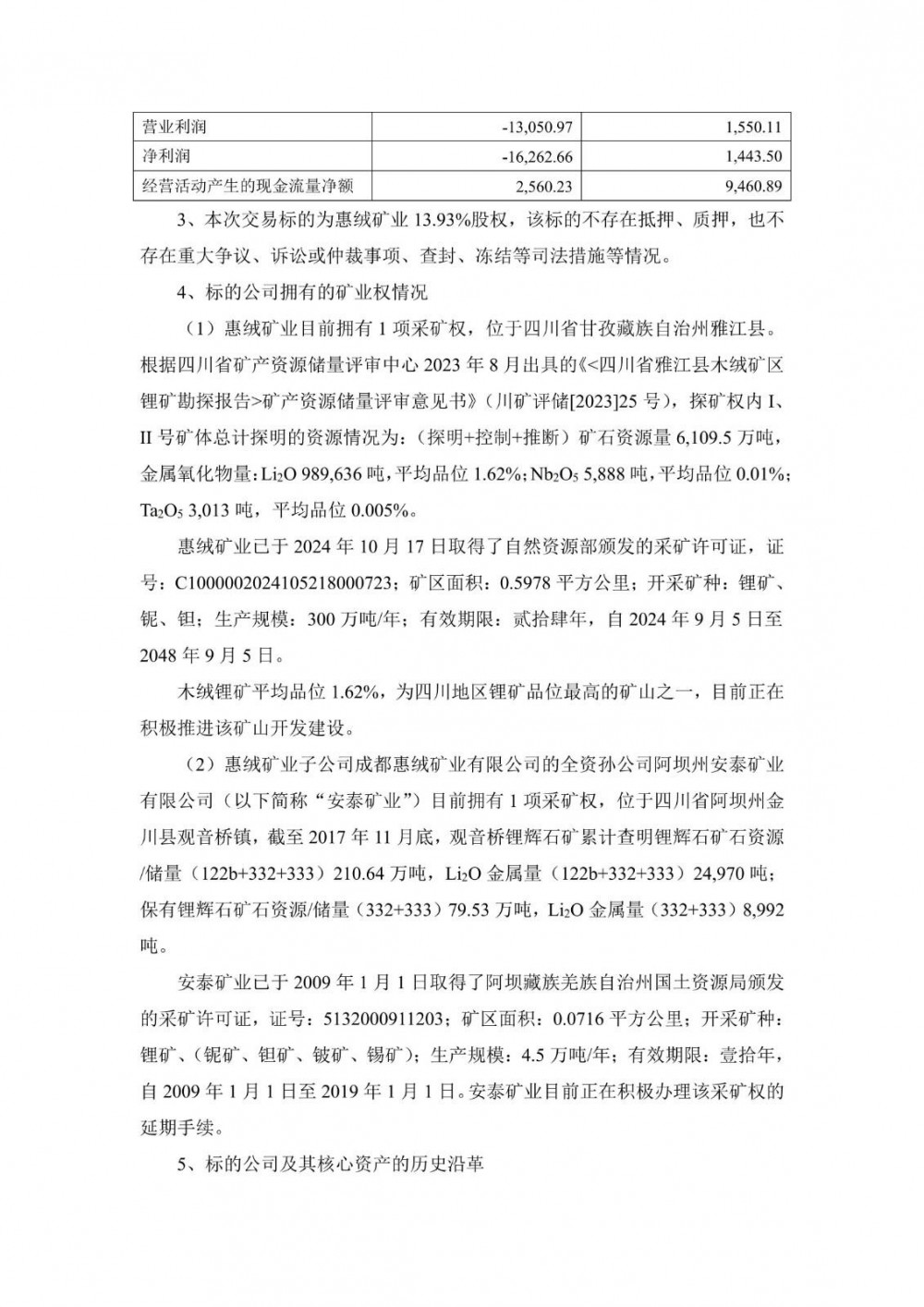 木绒锂矿拥有优质的锂矿资源和良好的开发前景,为自然资源部新一轮找矿突破战略行动的重要成果之一。盛新锂能本次收购惠绒矿业股权完成后,公司将完全掌握对木绒锂矿的控制权。公司将充分发挥在四川高海拔地区开发锂矿项目的经验,积极推进木绒锂矿开发建设,尽快实现公司锂矿资源自给率的显著提升,并形成稳定可靠的资源供给体系。