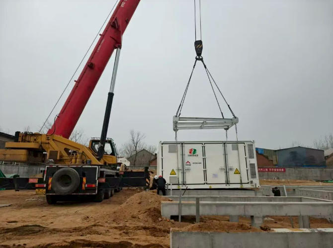 首套储能设备的顺利吊装就位,标志着本项目建设迈出了关键的一步。后续设备将按计划陆续到场吊装就位,为系统集成及调试奠定了坚实基础。