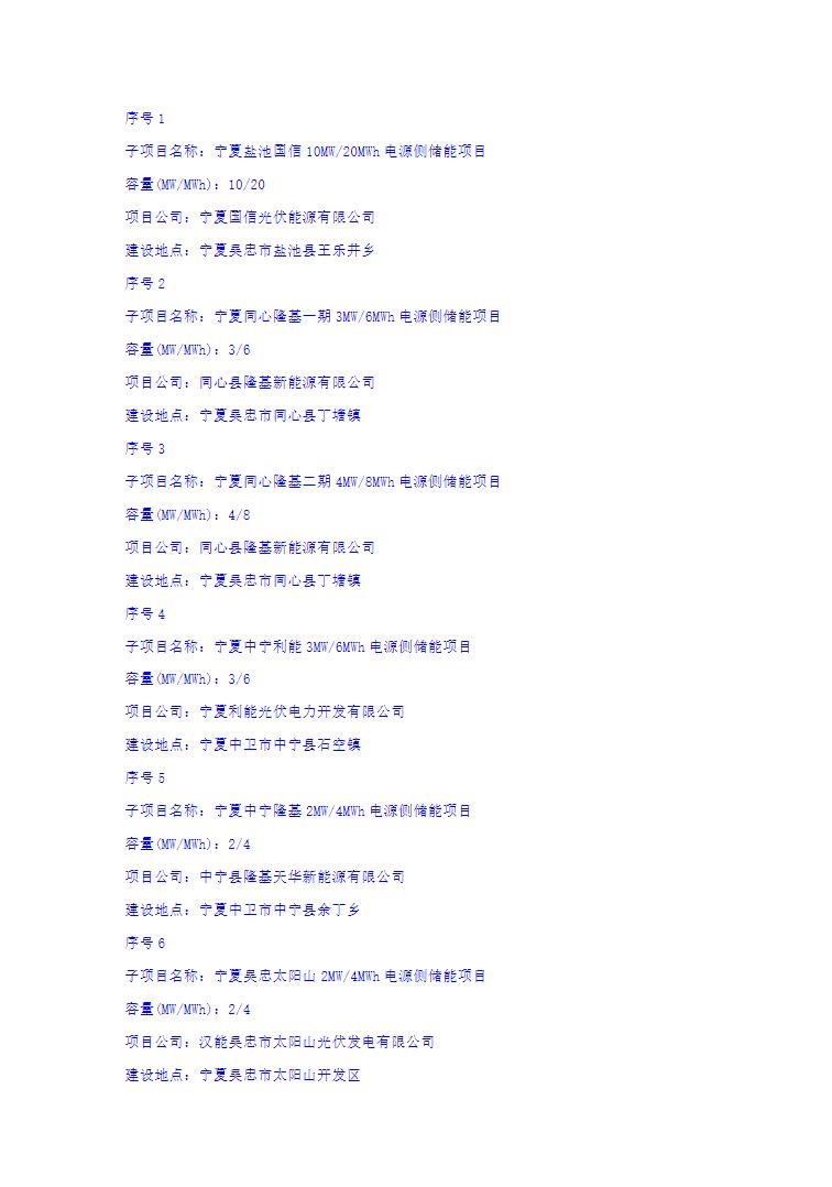 宁夏区域存量光伏配建电源侧储能项目,共包含6个子项目:分别为宁夏盐池国信10MW/20MWh电源侧储能项目、宁夏同心隆基一期3MW/6MWh电源侧储能项目、宁夏同心隆基二期4MW/8MWh电源侧储能项目、宁夏中宁利能3MW/6MWh电源侧储能项目、宁夏中宁隆基2MW/4MWh电源侧储能项目、宁夏吴忠太阳山2MW/4MWh电源侧储能项目。项目建设在原光伏场站内,按照光伏装机10%,2h配建电源侧储能,计划接入原光伏场站内,现需采购储能系统设备。