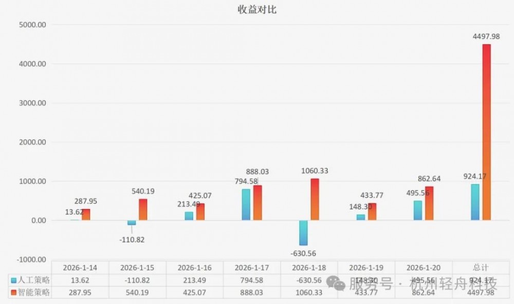 经过连续7天的运行,以实时电价核算收益,结果令人震惊:智能策略的总收益,达到人工策略的486% 尤其在价格异动的1月18日,人工策略因误判导致亏损630元,而智能策略则精准捕捉机会,实现盈利1060元。静态策略在动态市场中的无力感,与智能系统的适应力,形成了鲜明对比。