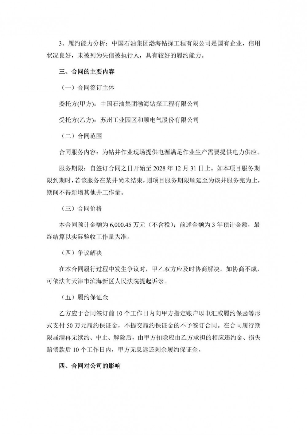 服务期限:自签订合同之日开始至2028年12月31日止。如本项目服务期限到期时,若该服务在某井尚未结束,则项目服务期限顺延至为该井服务完为止,期间不得新增其他井工作量。
