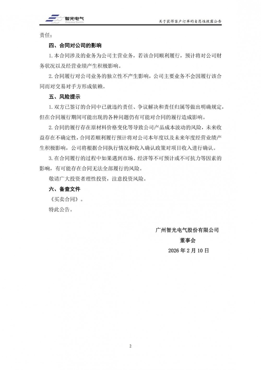 智光电气表示,本合同涉及的业务为公司主营业务,若该合同顺利履行,预计将对公司财务状况以及经营业绩产生积极影响。