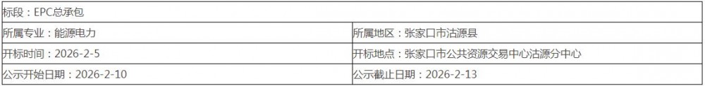 2月10日,河北燕赵沽源储能示范项目EPC总承包中标候选人公示。