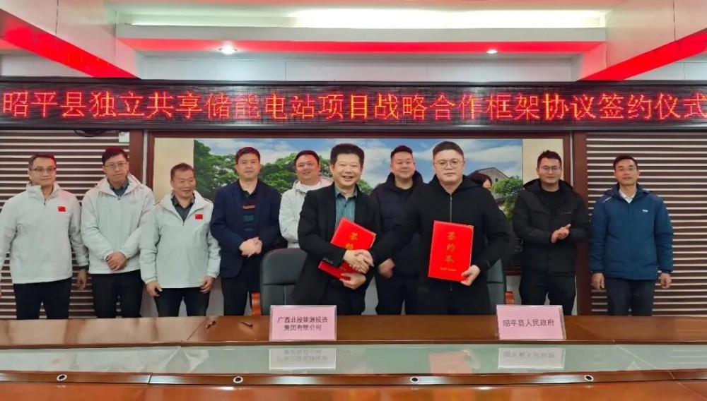 2月9日,北投能源集团与昭平县人民政府举行独立共享储能电站项目战略合作框架协议签约仪式。北投能源集团副总经理杨泓全,昭平县委常委、常务副县长陶照忠代表双方签署协议。