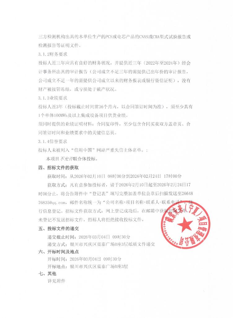 投标人近3年(投标截止时间前36个月内,以合同签订时间为准),须至少具有1个单体100MWh及以上集成设备项目供货业绩。