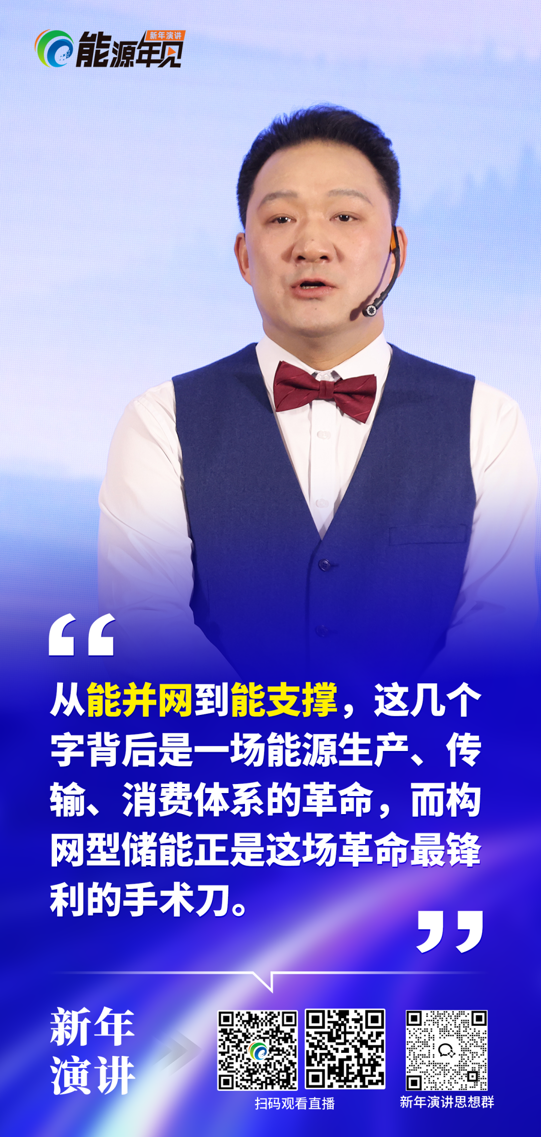 2026年2月10日,由、国能能源研究院联合出品的「能源年见」新年演讲活动在北京举行,总裁、国能能源研究院院长张福龙在新年演讲中深入剖析了中国新能源行业的发展转型方向,明确提出从“能并网”到“能支撑”的跨越是新型电力系统建设的核心特征,而构网型储能则成为推动这场行业革命的核心抓手。