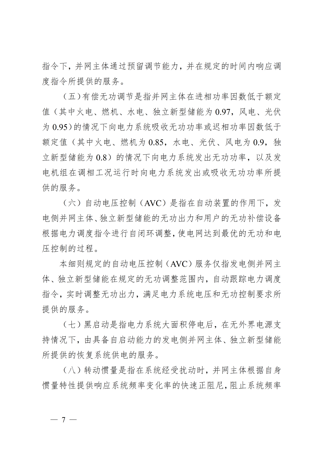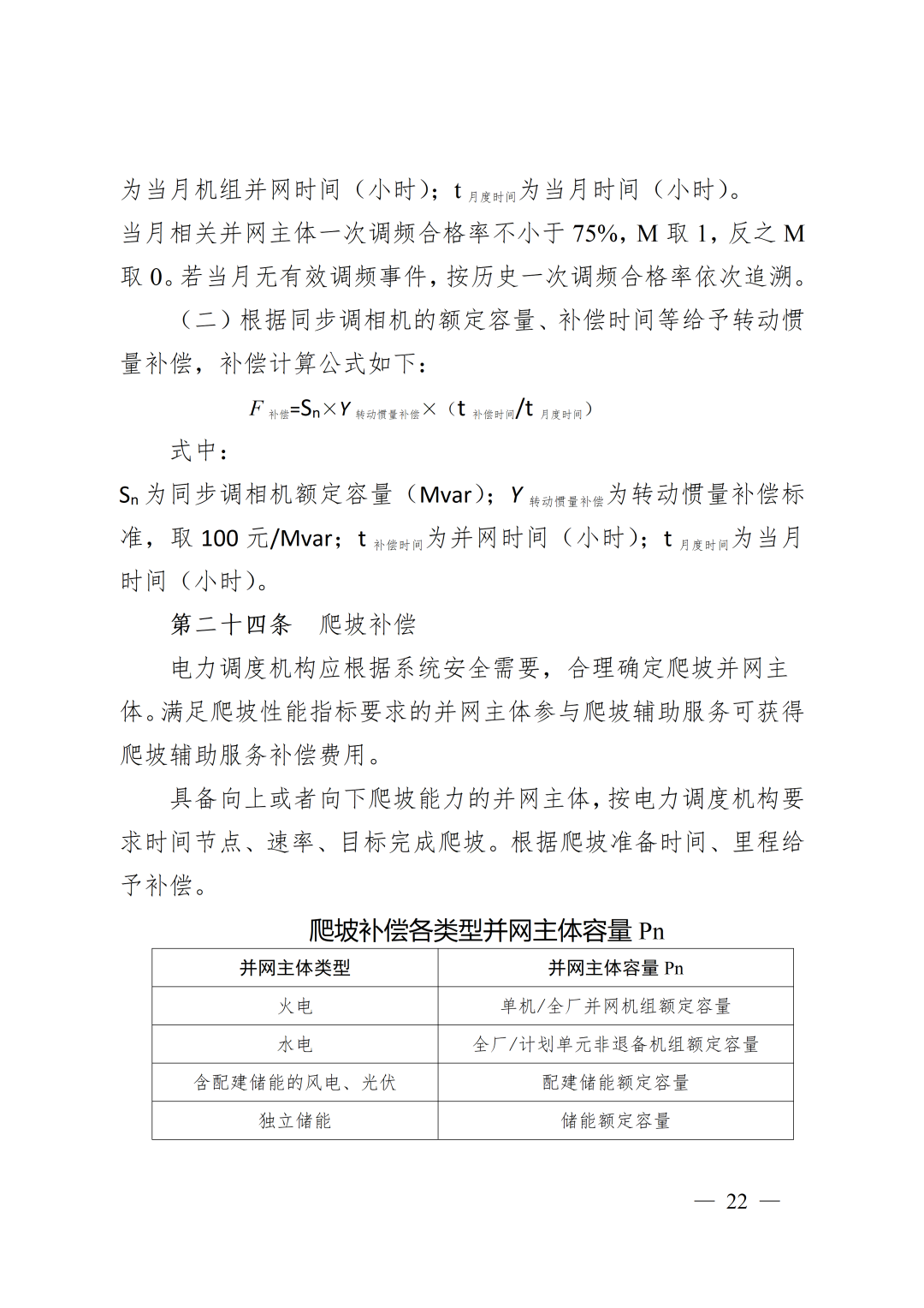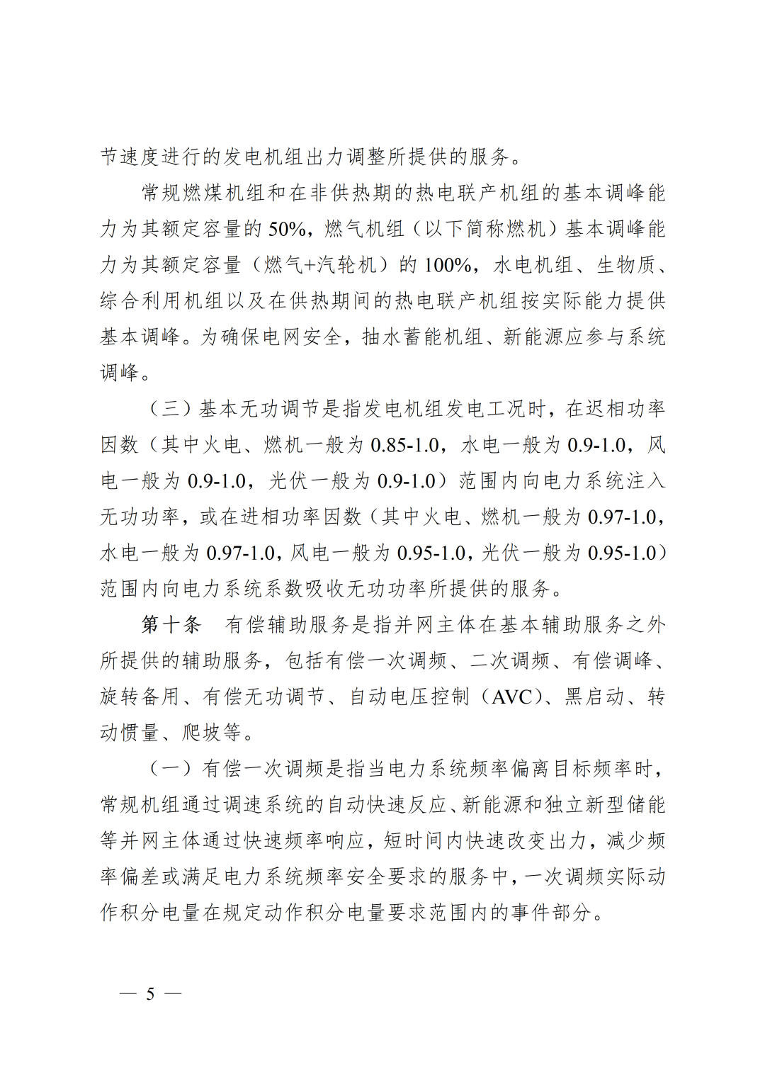 文件分别明确自动发电控制(AGC)服务补偿、自动功率控制(APC)服务补偿、有偿一次调频补偿、有偿调峰补偿、旋转备用补偿、有偿无功服务补偿、转动惯量补偿、爬坡补偿等多个有偿辅助服务的补偿标准。