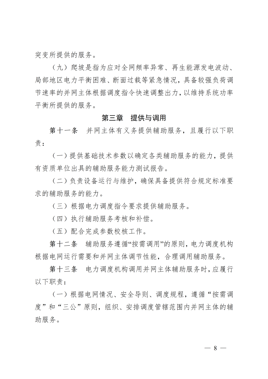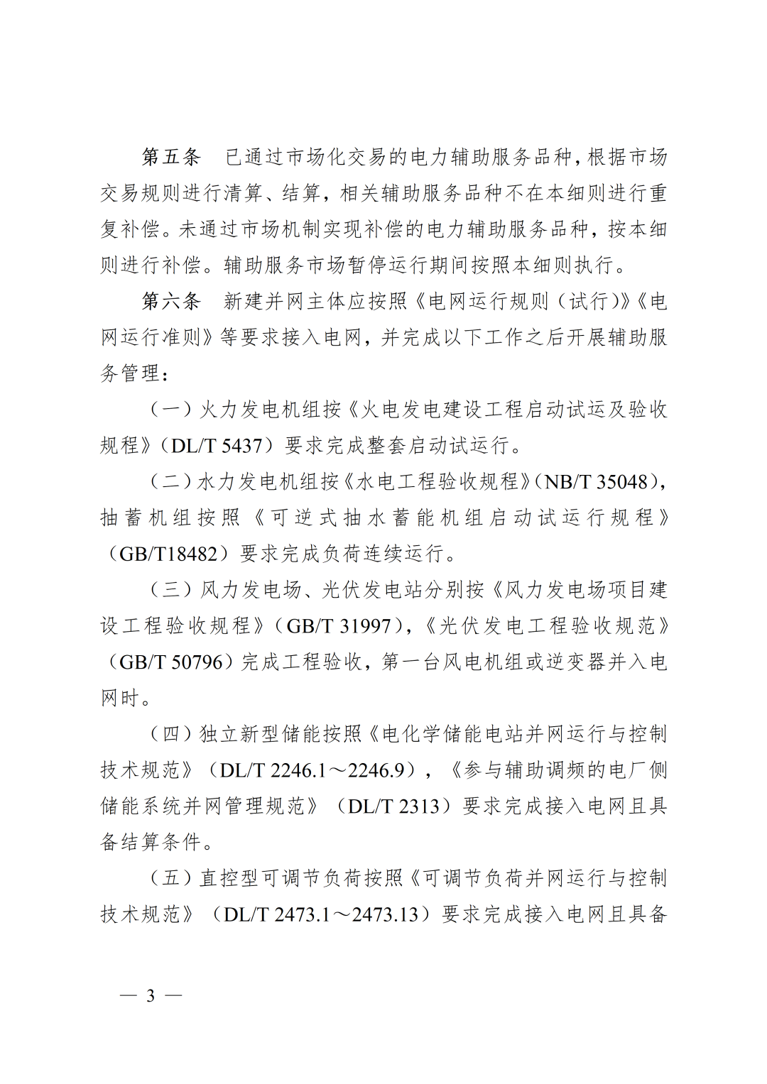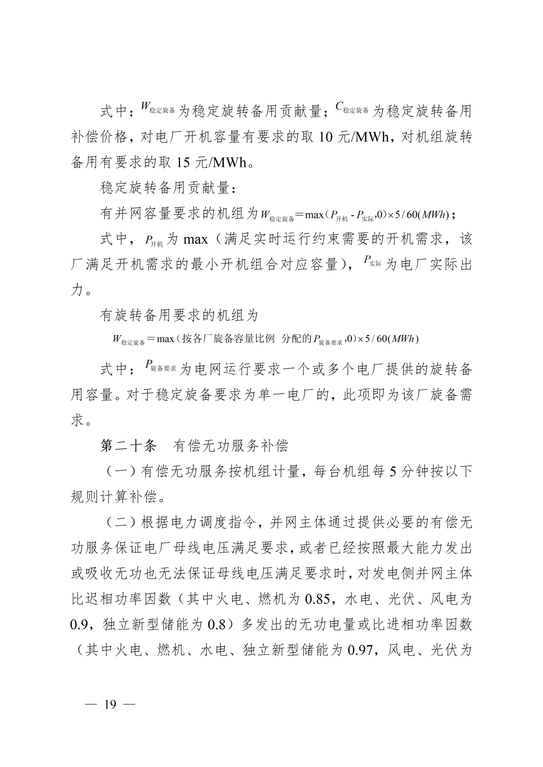 文件分别明确自动发电控制(AGC)服务补偿、自动功率控制(APC)服务补偿、有偿一次调频补偿、有偿调峰补偿、旋转备用补偿、有偿无功服务补偿、转动惯量补偿、爬坡补偿等多个有偿辅助服务的补偿标准。