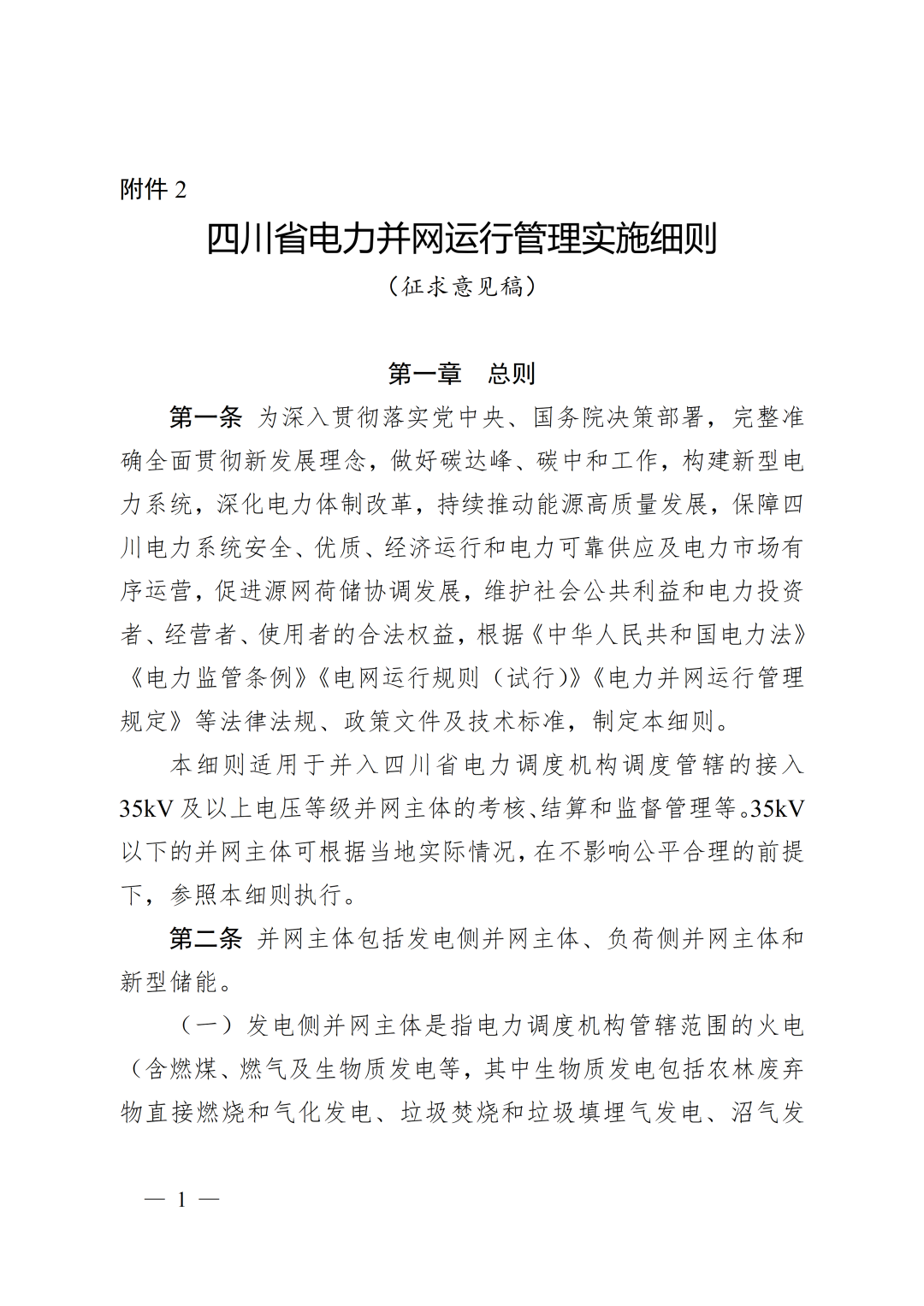 附件:四川省电力并网运行管理实施细则(征求意见稿).doc