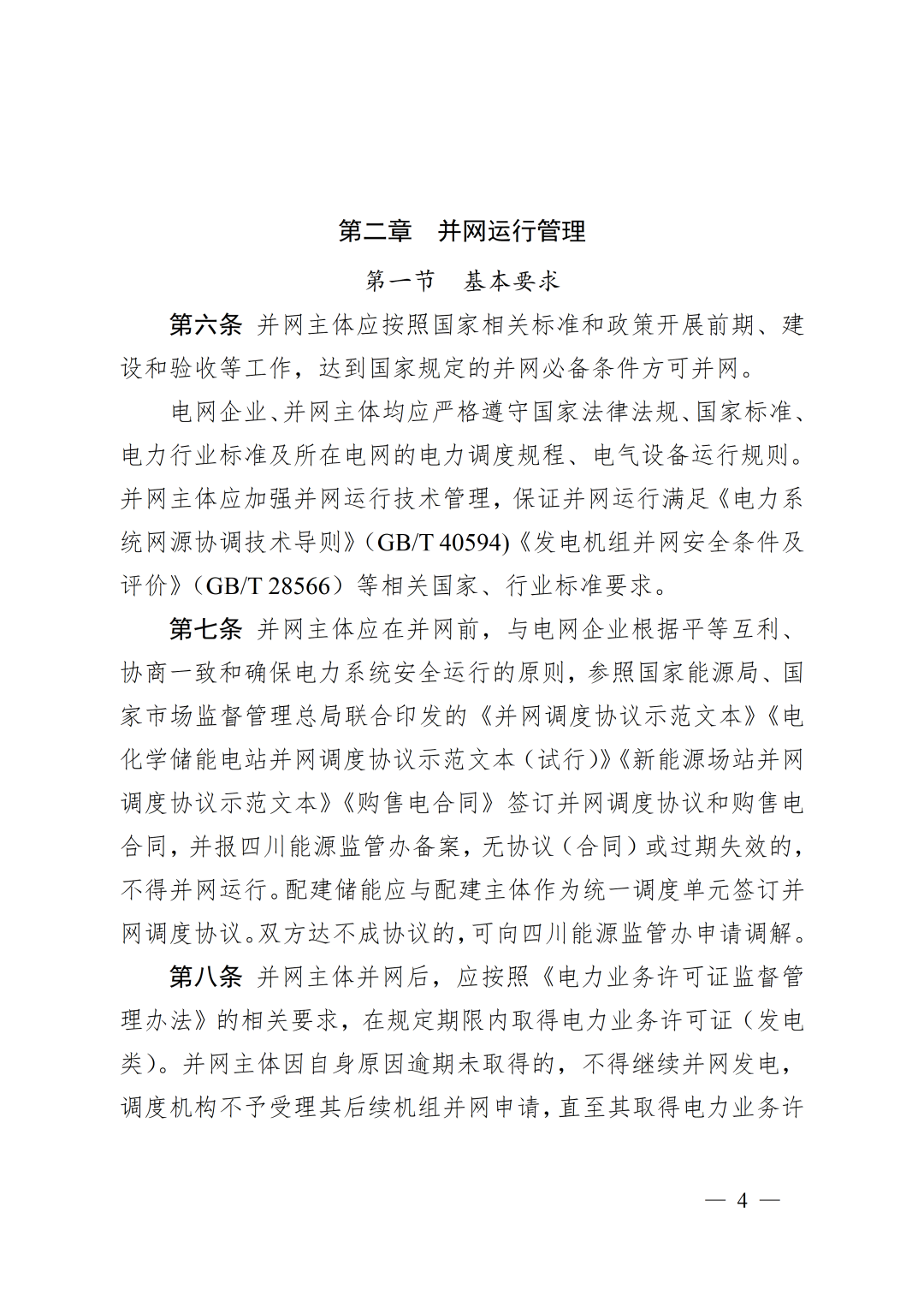 《四川省电力并网运行管理实施细则》中提到,并网主体包括发电侧并网主体、负荷侧并网主体和新型储能。