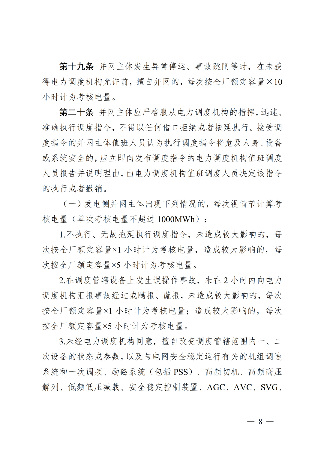6、其他依据有关法律、法规及规程规定认定属于违反调度纪律的事项,未造成后果的,每次按额定容量×1小时的标准进行考核;造成后果的,每次按额定容量×5小时的标准进行考核。