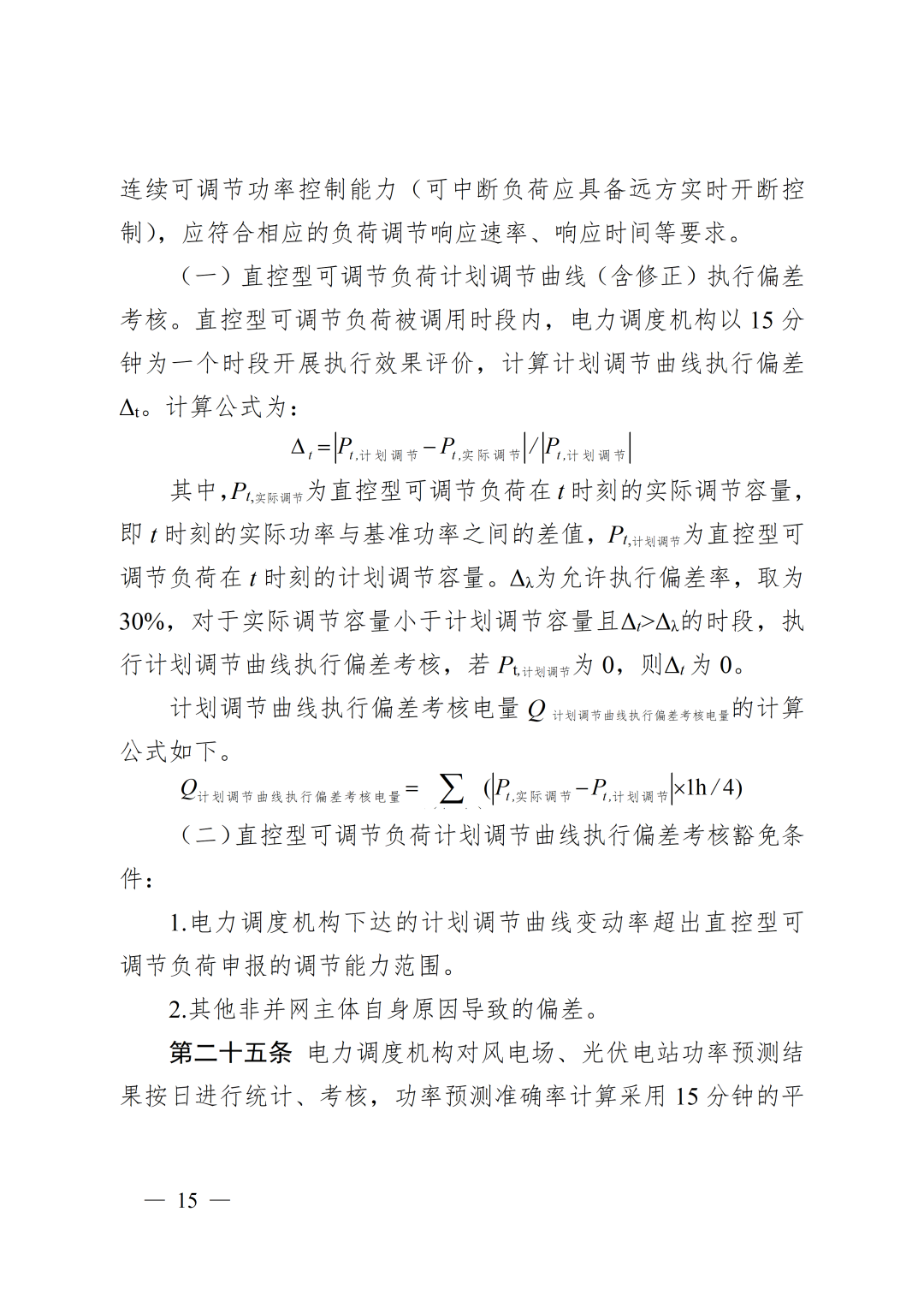 负荷侧并网主体是指传统高载能工业负荷、工商业可中断负荷、电动汽车充电网络等能够响应电力调度指令的直控型可调节负荷(含通过聚合商、虚拟电厂等形式聚合)。纳入本细则管理的直控型可调节负荷容量不低于5MW,向上或向下调节能力不低于5MW,持续时间不低于1小时。