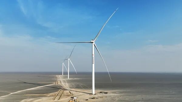 广东能源托克逊风电储能项目是 “疆电入粤” 能源输送体系中的重点清洁能源工程,坐落于新疆吐鲁番市托克逊县小草湖及阿拉沟区域。项目规划总装机容量 100 万千瓦(1GW),分阶段推进建设;其中一期工程装机规模 50 万千瓦,配备 50 台 10MW 高单机容量风电机组,目前已实现全容量并网发电。