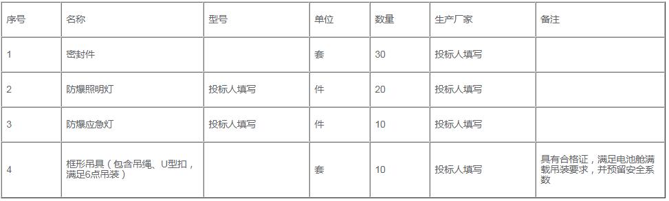 中标人需依据供货量等比例供应下表所列备品备件及专用工具。