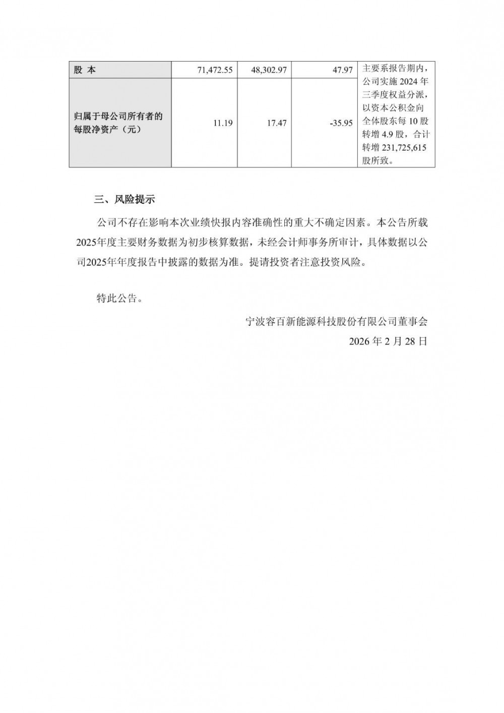 近日,容百科技发布2025年度业绩快报公告。2025年实现营业总收入约为122.71亿元,同比下降18.67%;对应实现归属净利润约为-1.82亿元,上年同期为2.96亿元。