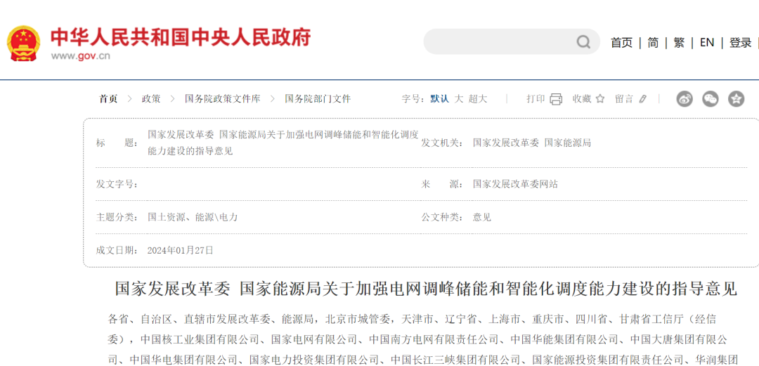 ✅《关于加强电网调峰储能和智能化调度能力建设的指导意见》