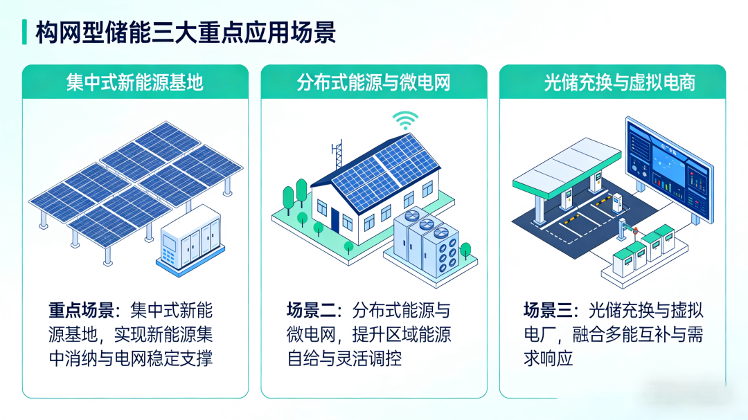 政策明确了构网型储能的三大重点应用场景,通过场景引导,推动构网型储能从示范走向规模化应用,实现与新能源、电网的深度融合。